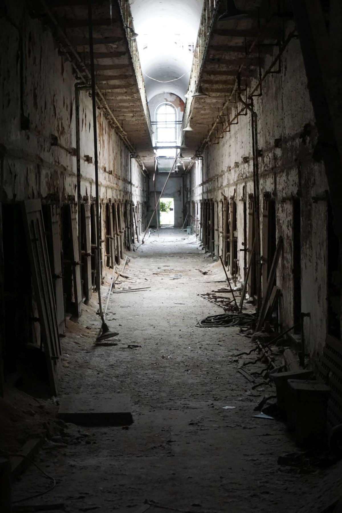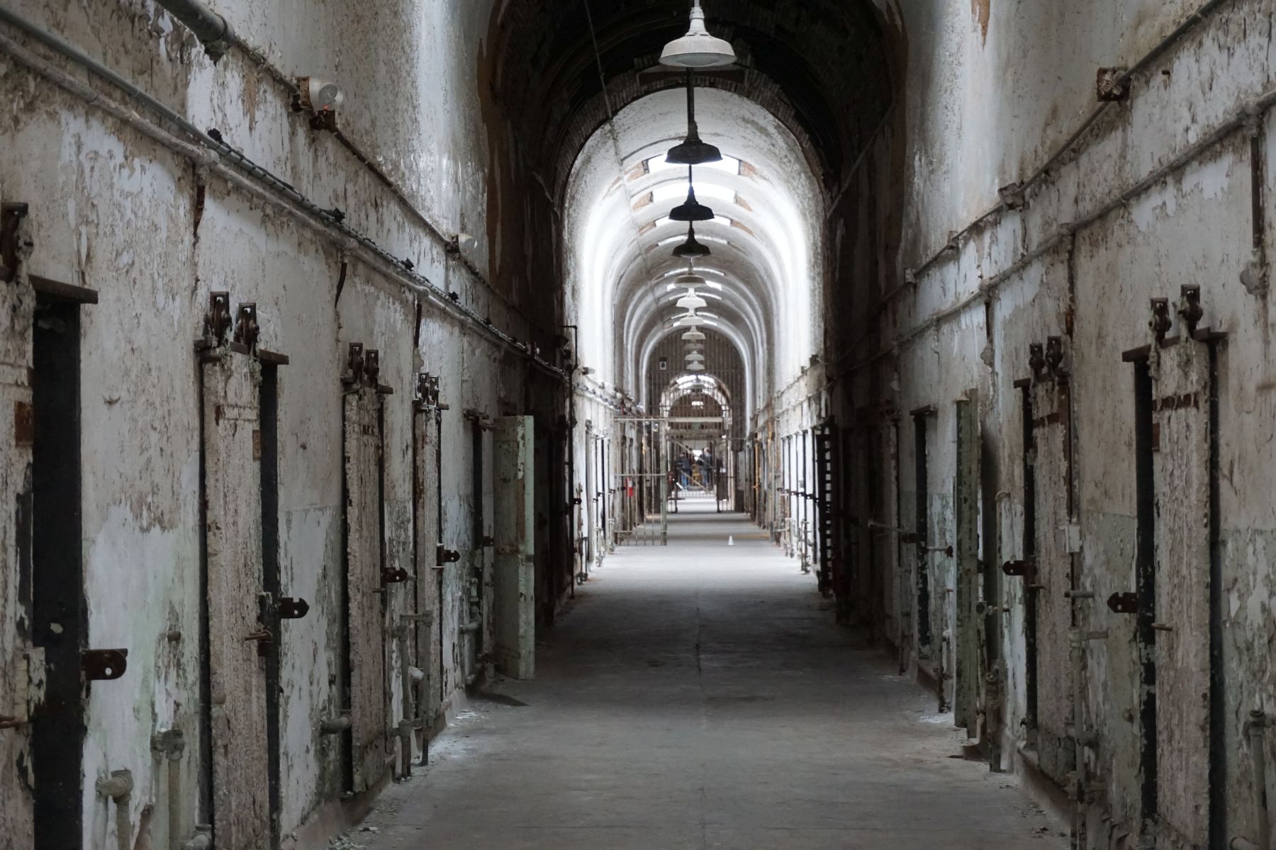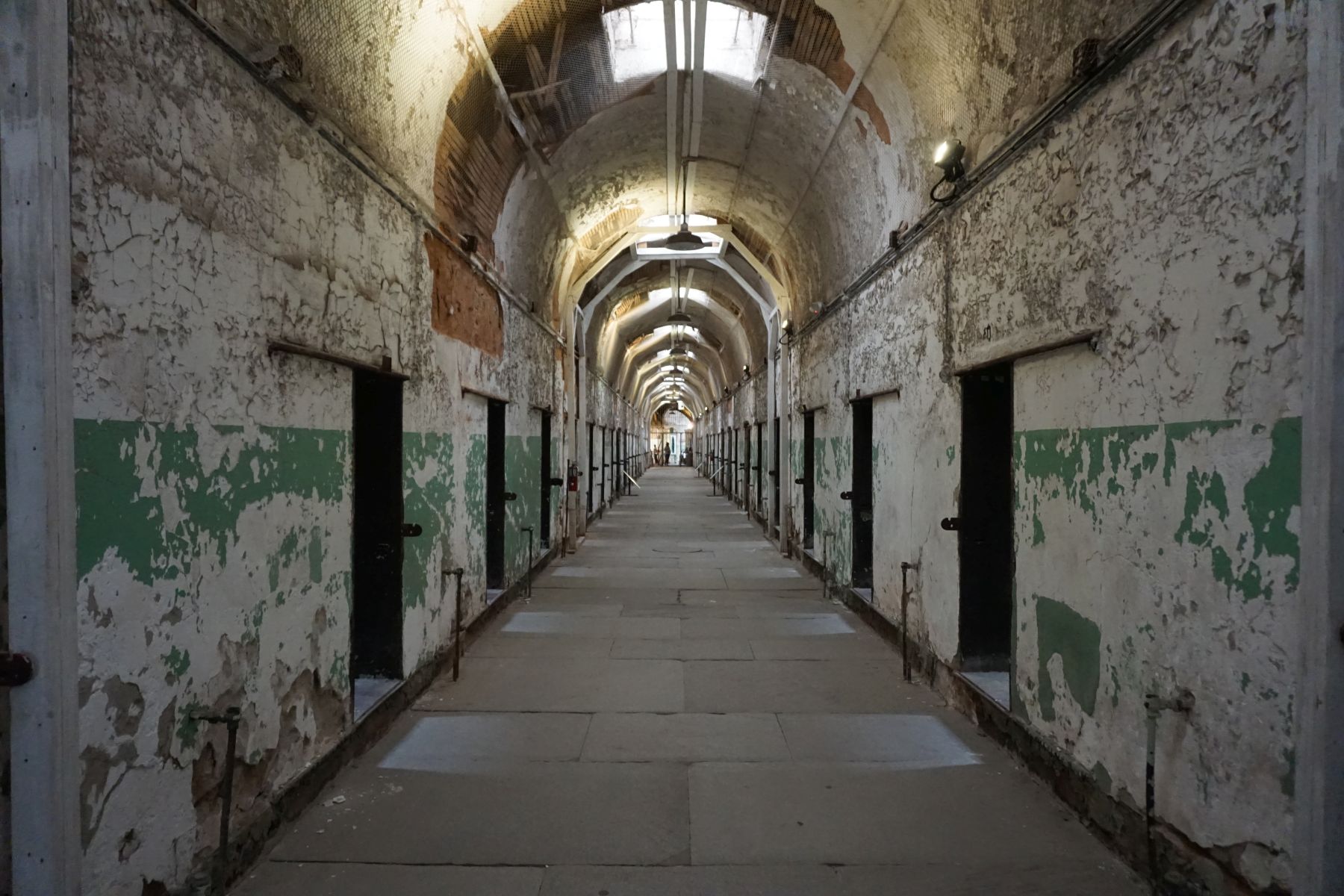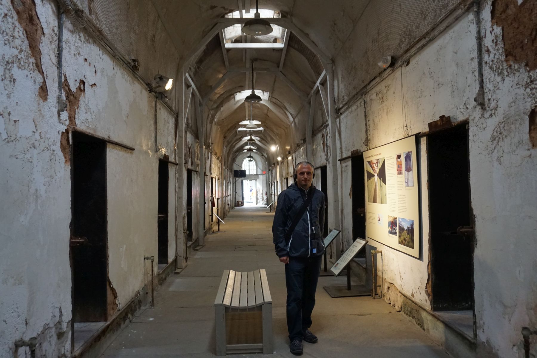 Wir fahren fast ans andere Ende und steigen beim Eastern State Penitentiary aus. Es war das damals bekannteste und teuerste Gefängnis der Welt. Nach seinem Vorbild wurden auf der ganzen Welt Gefängnisse gebaut. Heute ist es eine Ruine und nur zum Teil restauriert. Wir machen eine Audio-Tour und erforschen die Gänge und Zellen – beängstigend.