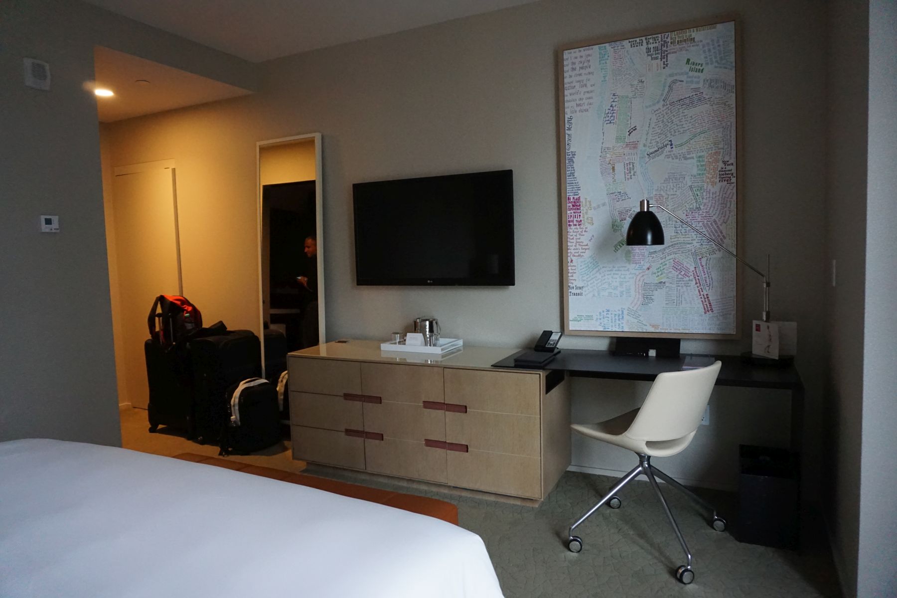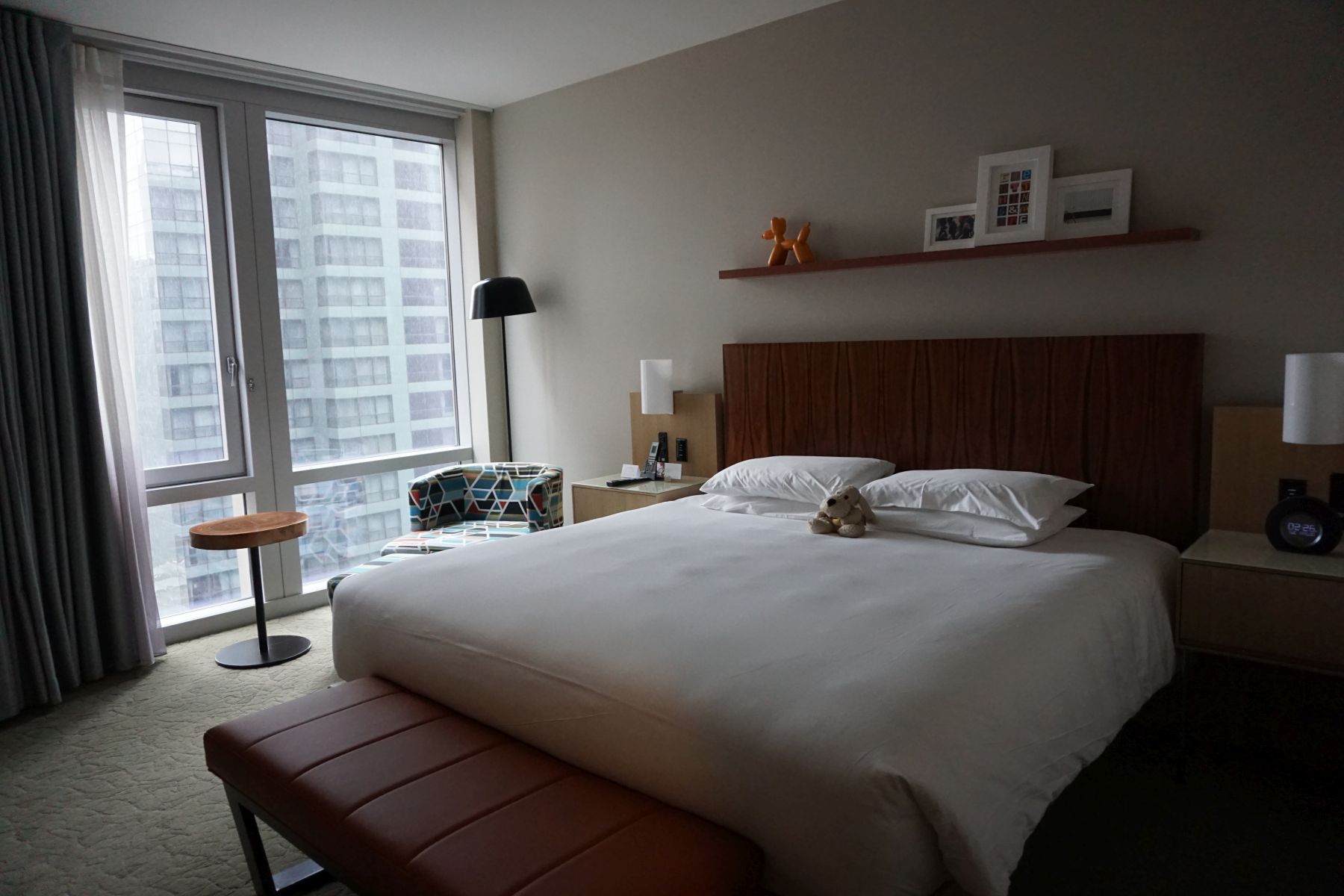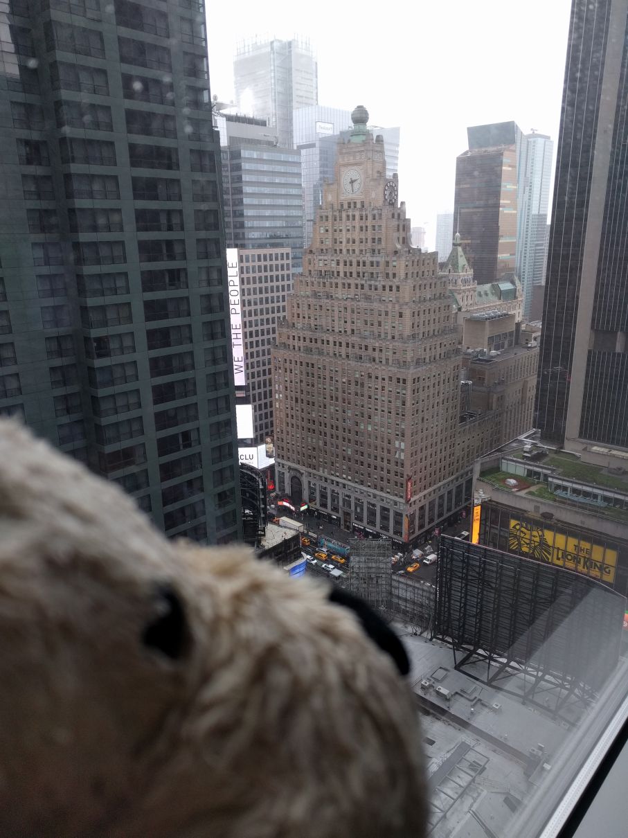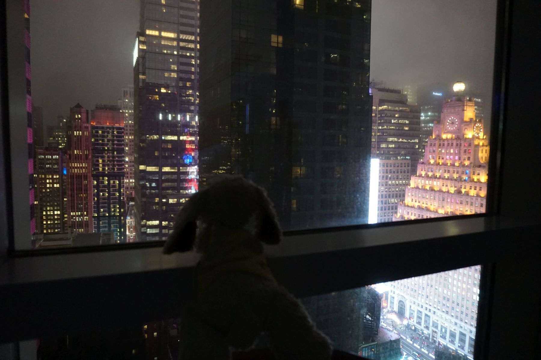 Unser Hotel liegt absolut zentral in der 45. Straße und der Ecke Broadway – genau beim Times Square. Als wir in den 33. Stock fahren knackt es in den Ohren und der Ausblick ist der Wahnsinn!