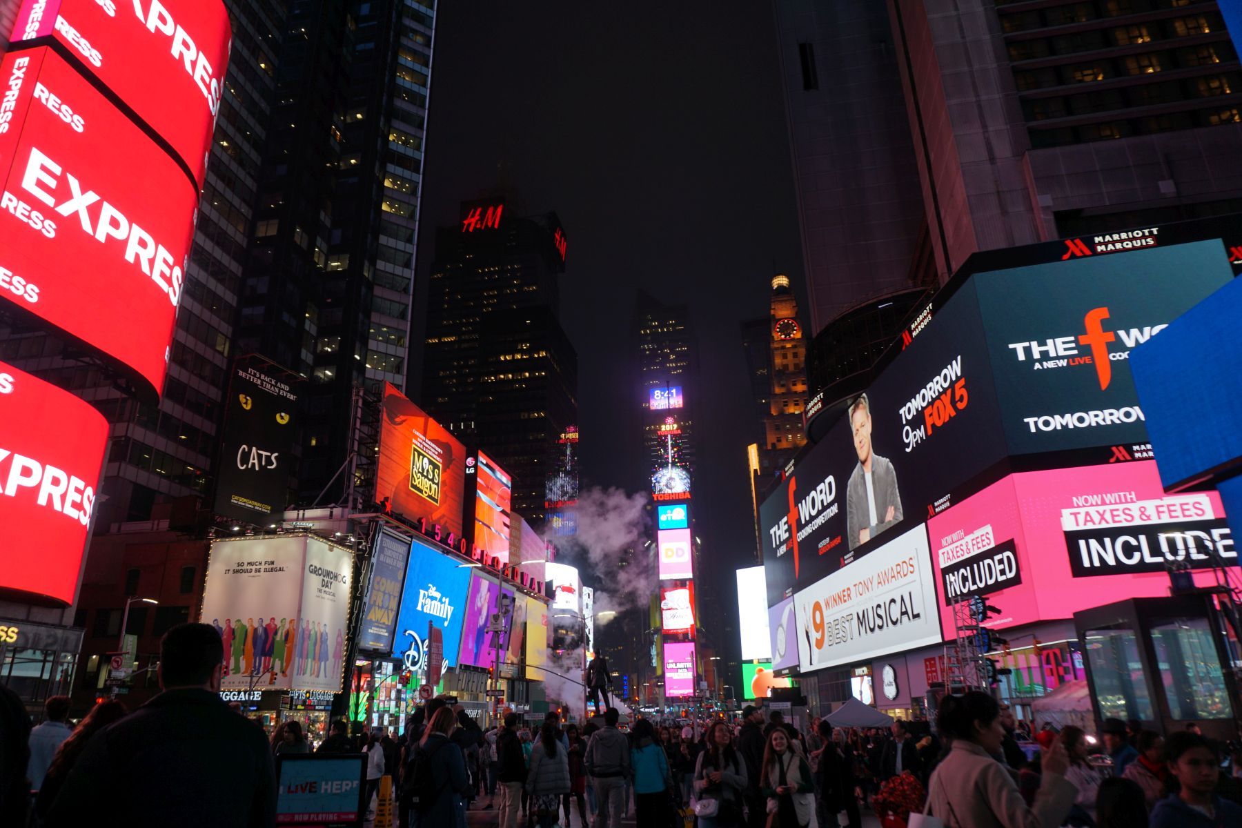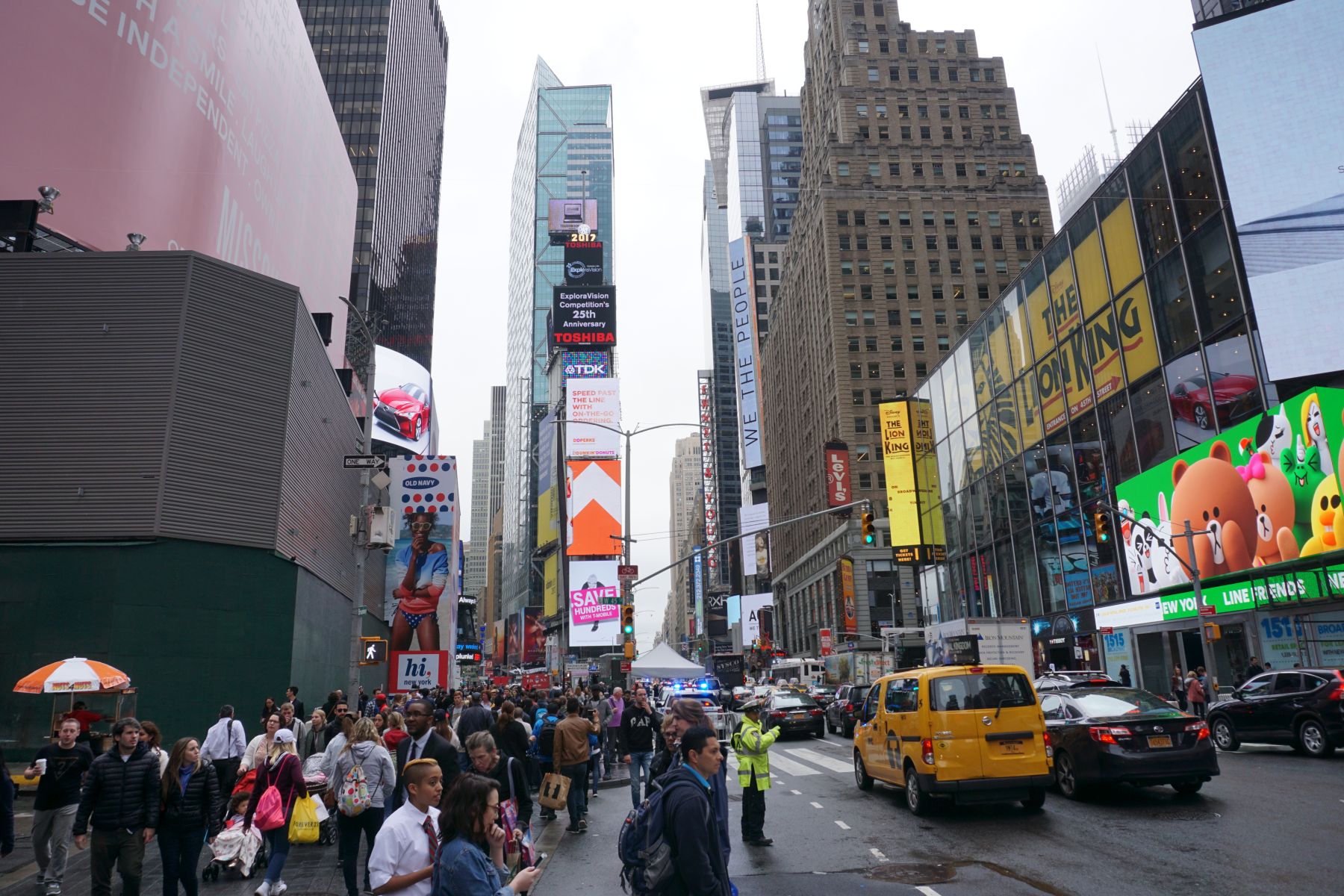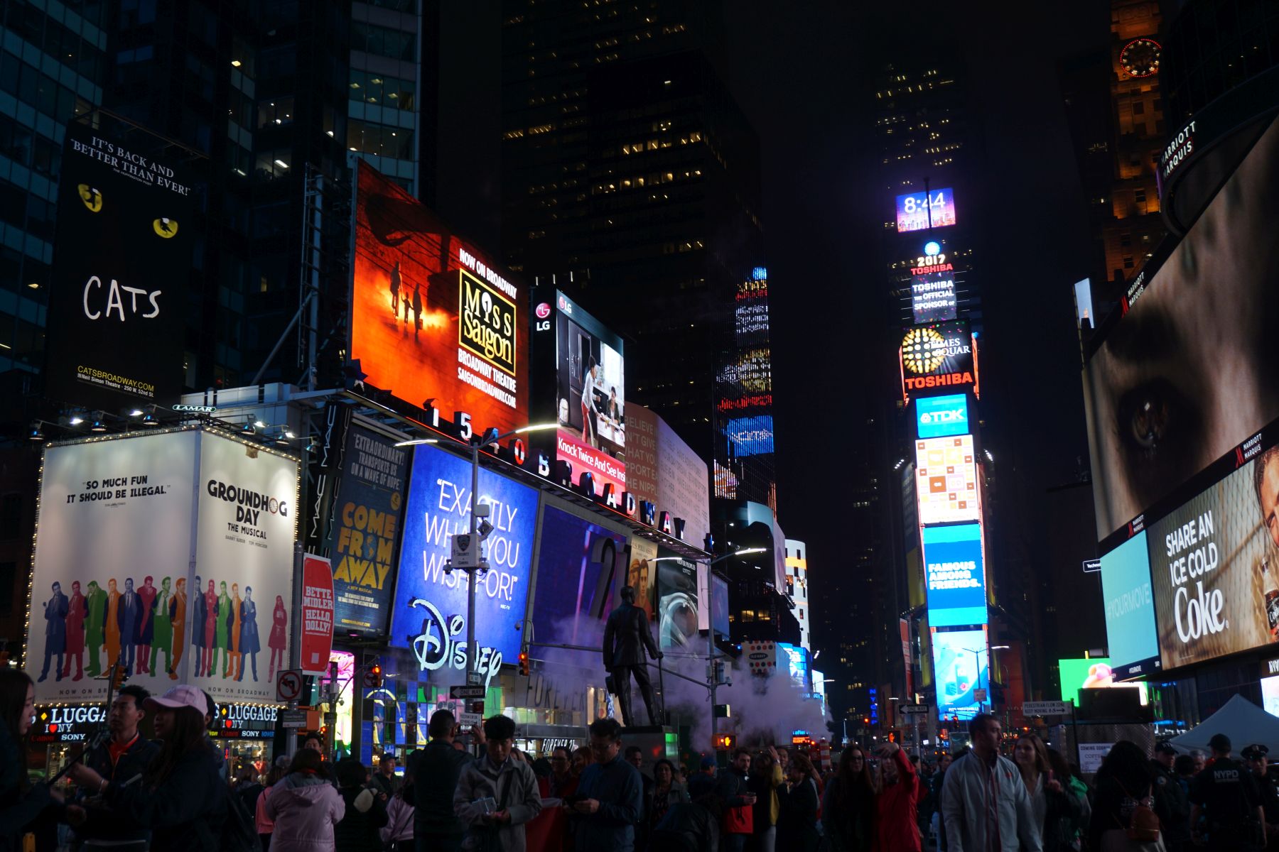 Zum Tagesabschluss besuchen wir nochmal den Times Square und bestaunen die Lichter. Auf dem Platz ist es fast taghell!