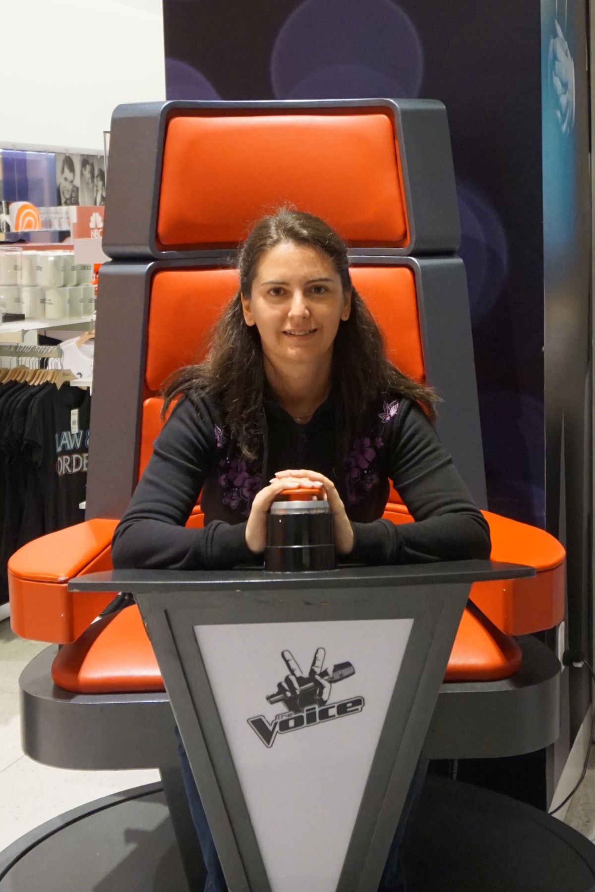 Auf der Plaza ist der Memorial Day noch zu spüren mit vielen Flaggen und Blumen, aber auch einer überdimensionalen Balletttänzerin. Natürlich sind im Untergeschoß auch jede Menge Shops zu finden – in einem steht der Stuhl für „The Voice“ – da kann ich nicht widerstehen 😉