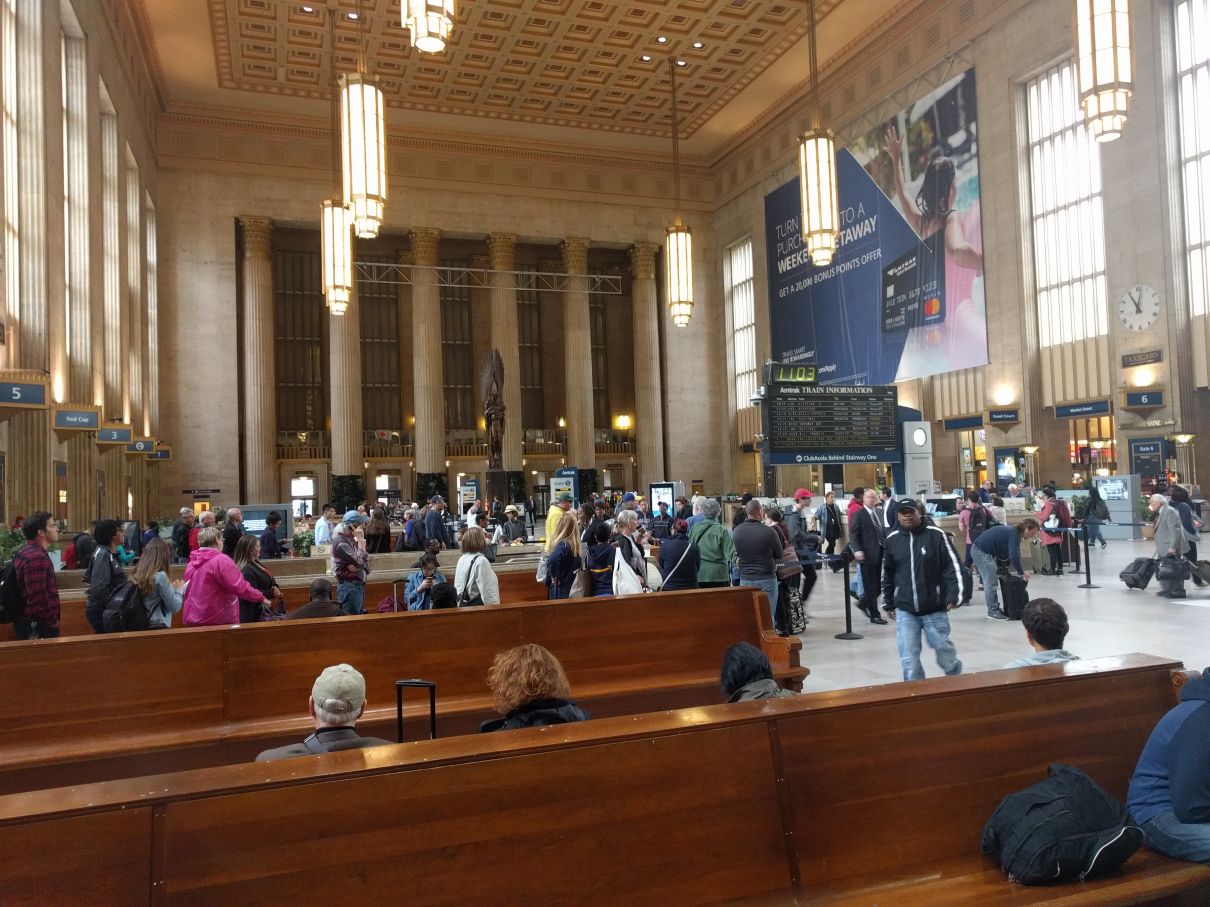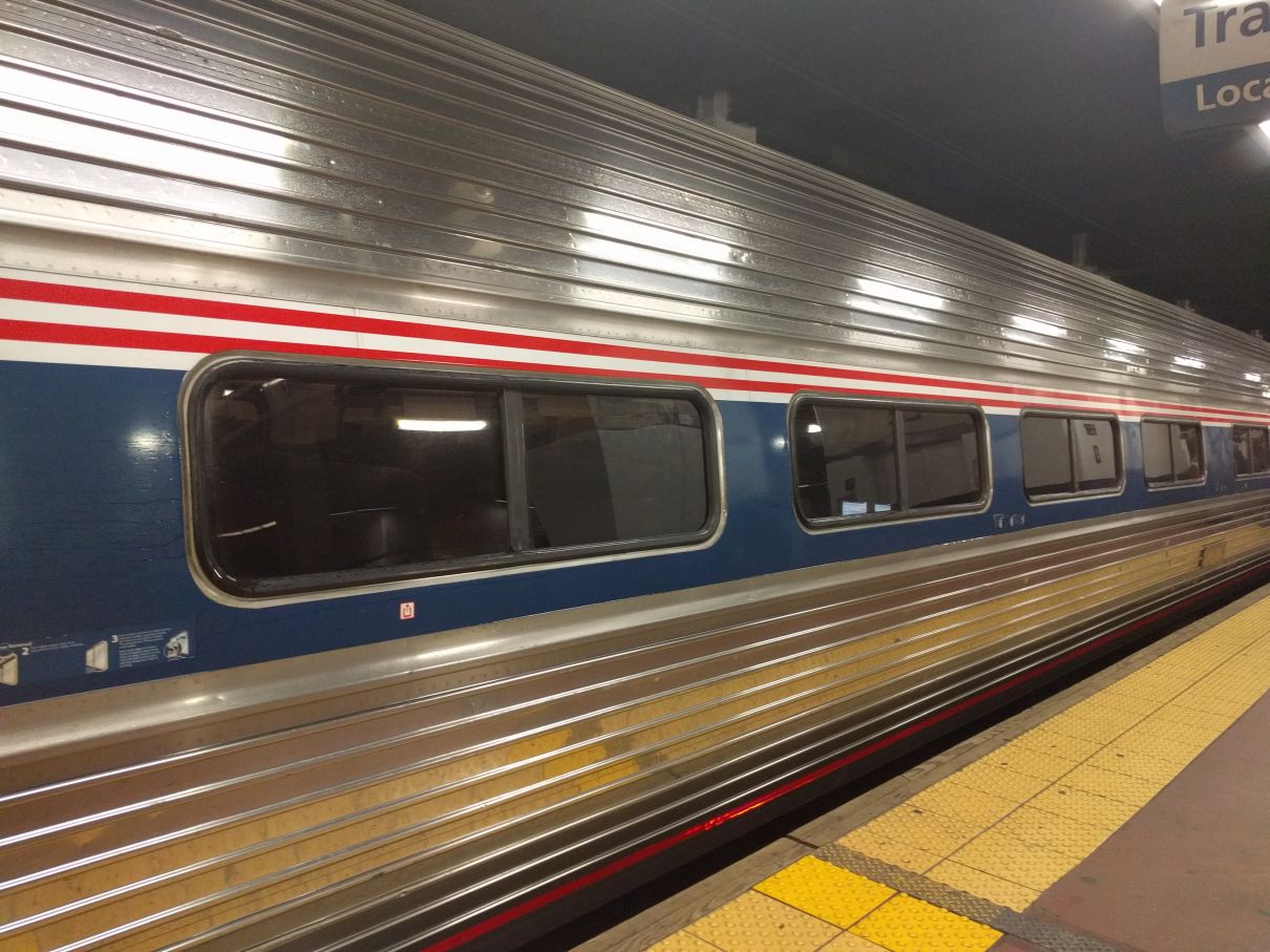 Danach wird noch der Rest in die Koffer gepackt und wir fahren per Taxi zum Bahnhof. Dort warten wir geduldig auf unseren Amtrak-Zug, der uns in 1,5 Stunden nach New York bringt. Er ist leider recht voll und wir erfahren, dass eine Sitzplatzreservierung hier lediglich bedeutet, dass irgendwo in dem Zug 2 Plätze für uns vorgesehen sind… 🙁 Aber zum Glück finden wir welche.