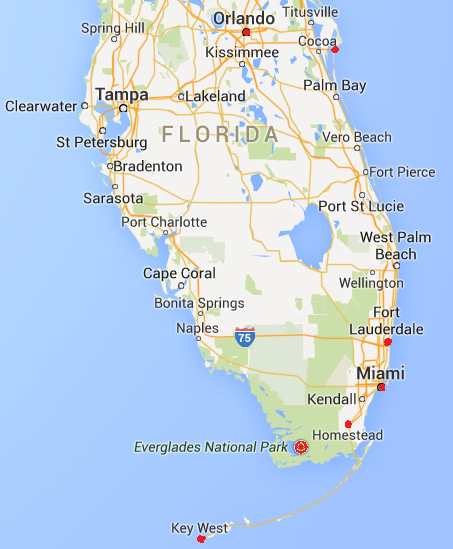 Die Ostküste fahren wir dann via Cocoa Beach langsam entlang Richtung Süden und schauen uns die schönen Küstenstädtchen und Strände an. Fort Lauderdale, Hollywood (ja, das gibt es auch im Osten) und Sunrise werden wir dann unsicher machen und bestimmt auch das riesige Shoppingcenter dort besuchen.
