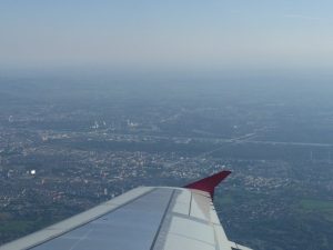 Nach einem längeren Marsch sind wir auch schon am Gate und sitzen in einem recht großen Flieger. Doch unser Pilot meldet, dass sich eine Türe nicht schließen lässt. Nachdem das doch recht wichtig ist warten wir auf die Techniker. Der Pilot meldet zwischendurch, dass die Techniker jetzt am Zusammenbauen sind und hoffentlich keine Teile übrig bleiben… Na wenn er noch Witze machen kann… sind wir beruhigt.