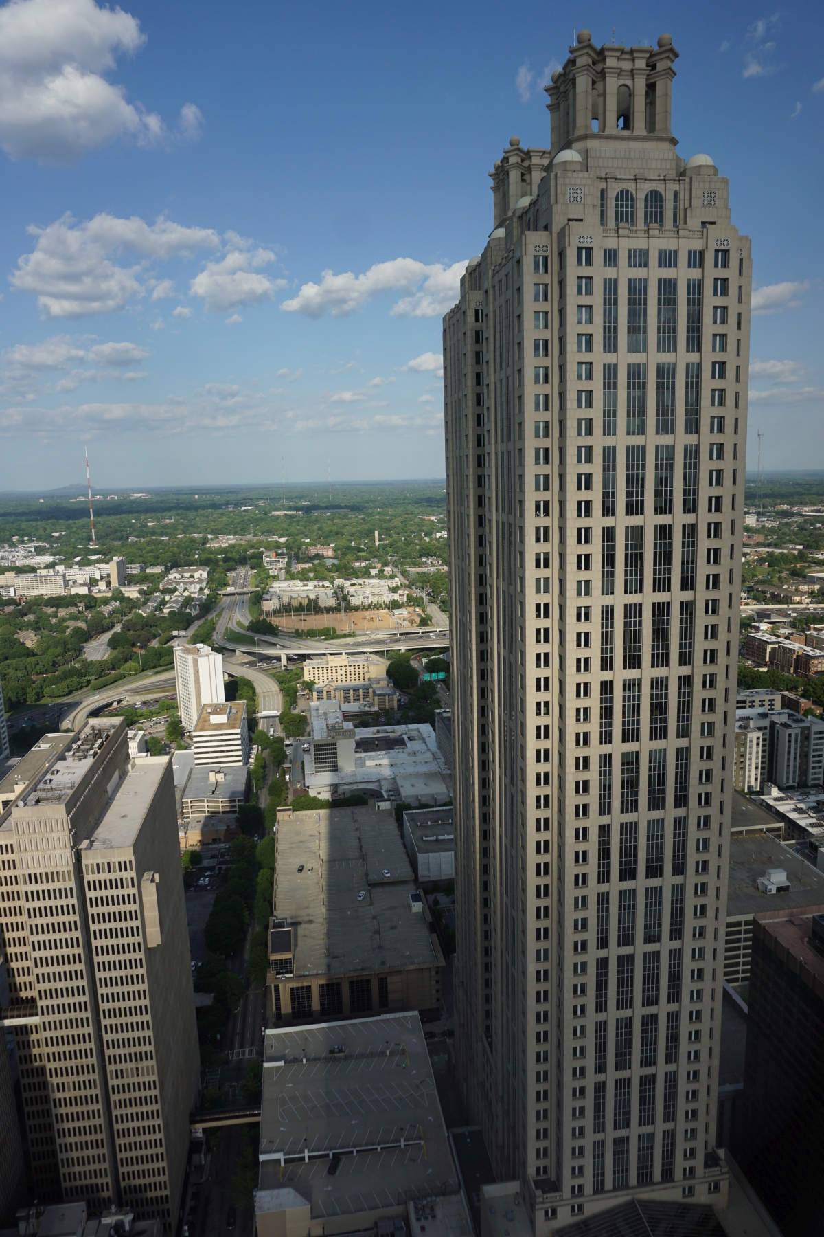Unser Zimmer im Westin Peachtree Plaza Hotel ist in der 59. Etage und wir bestaunen sofort die Aussicht!