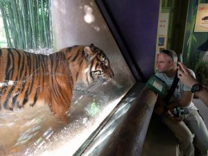 Coolstes Foto ist mit Abstand bei der Begegnung mit dem Sumatra Tiger. Er ist direkt an der Scheibe entlang getigert und hat Martin direkt in die Augen geschaut.