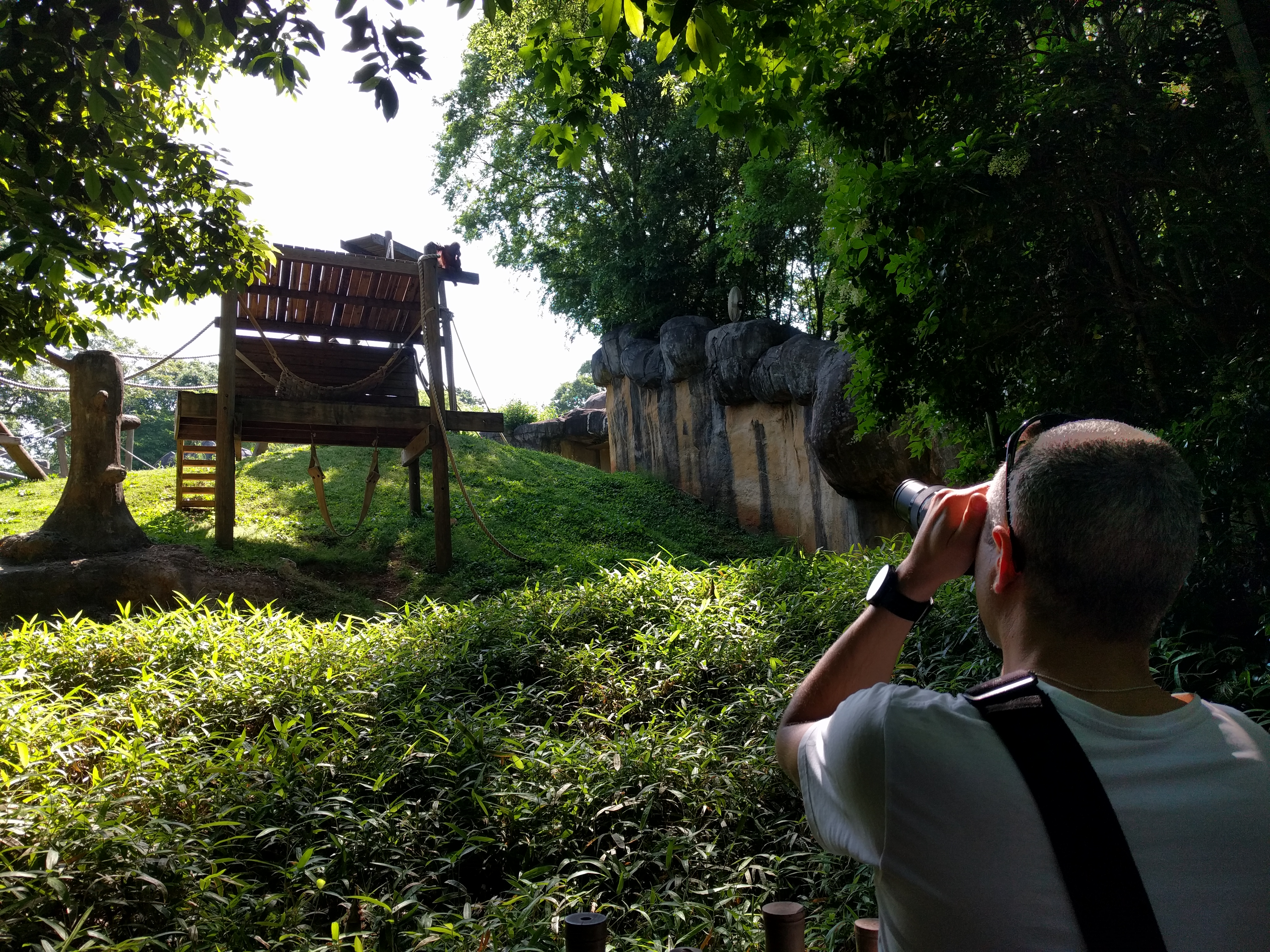 Wir kommen pünktlich zur Öffnung des Atlanta Zoos und eilen gleich zu den Pandas. Die haben nämlich auch Zwillinge: Ya Lun and Xi Lun (geboren 3.9.2016). Die sitzen bzw. liegen gerade beim Frühstück und lassen sich durch uns gar nicht stören. Mama Lun Lun und Papa Yang Yang sind jeweils im Innengehege.