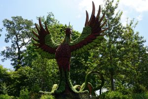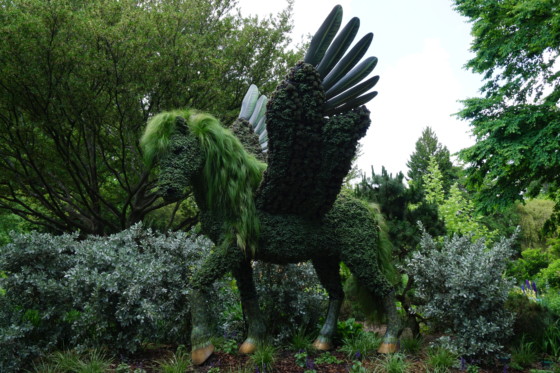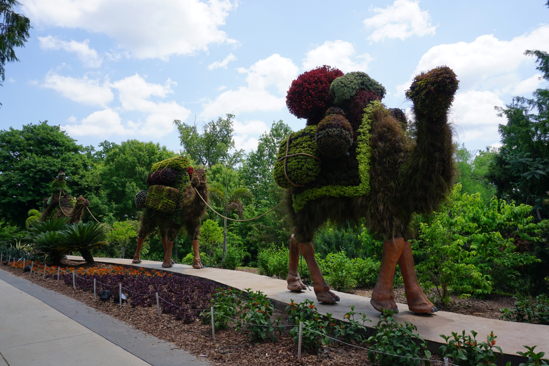 Im Anschluss fahren wir auch wieder nur ein paar Meilen zum Atlanta Botanical Garden. Dort gibt es neben den „normalen“ Pflanzen auch eine ganz besondere Ausstellung genannt „Imaginary World“. Das sind riesengroße bepflanzte Skulpturen, die in eine magische Welt entführen. Highlight ist die fast 8 Meter hohe Skulptur „Earth Goddess“. Ihre Haare sind komplett mit Pflanzen bewachsen und in ihrer Hand hält sie eine Wasserquelle.