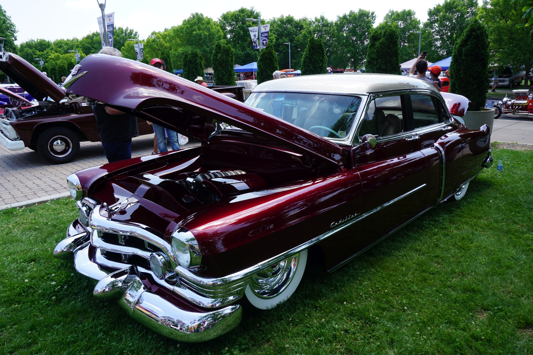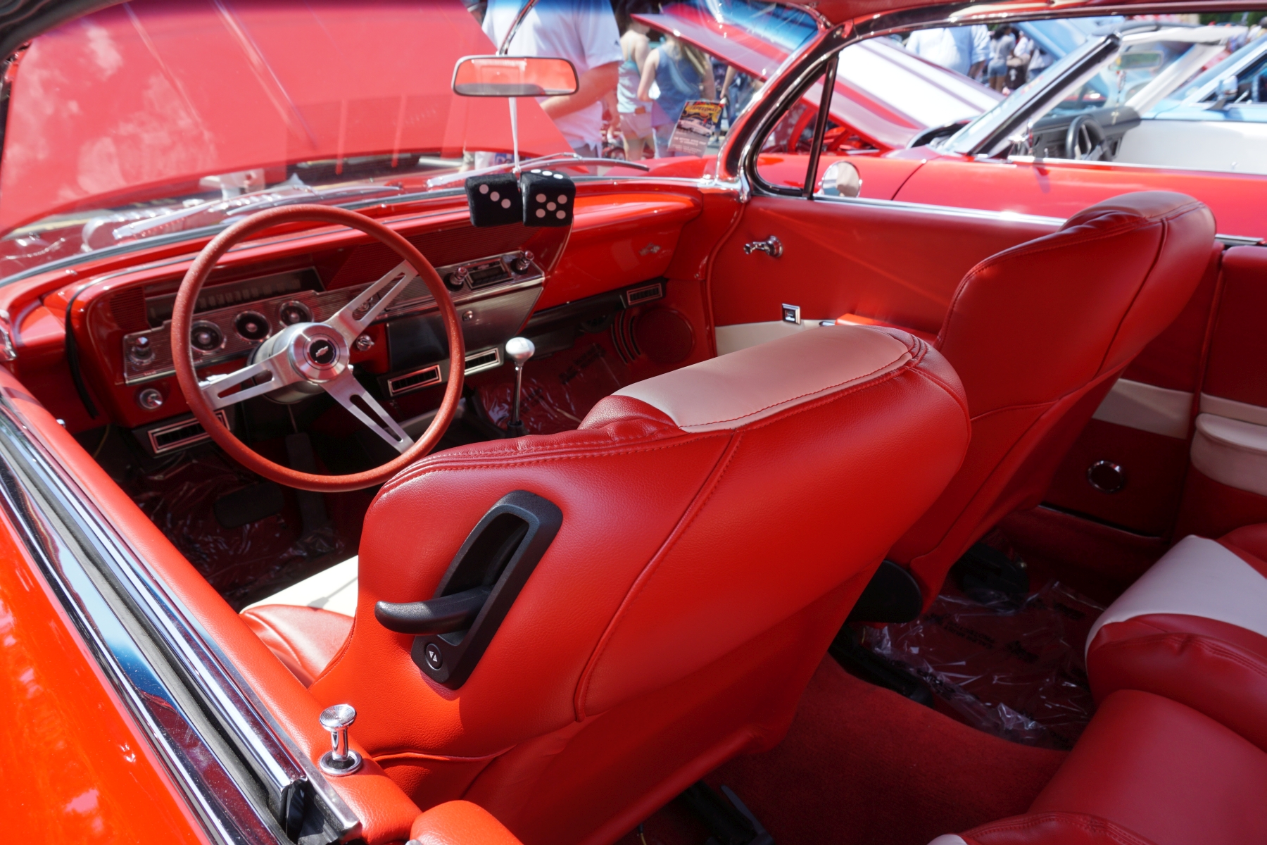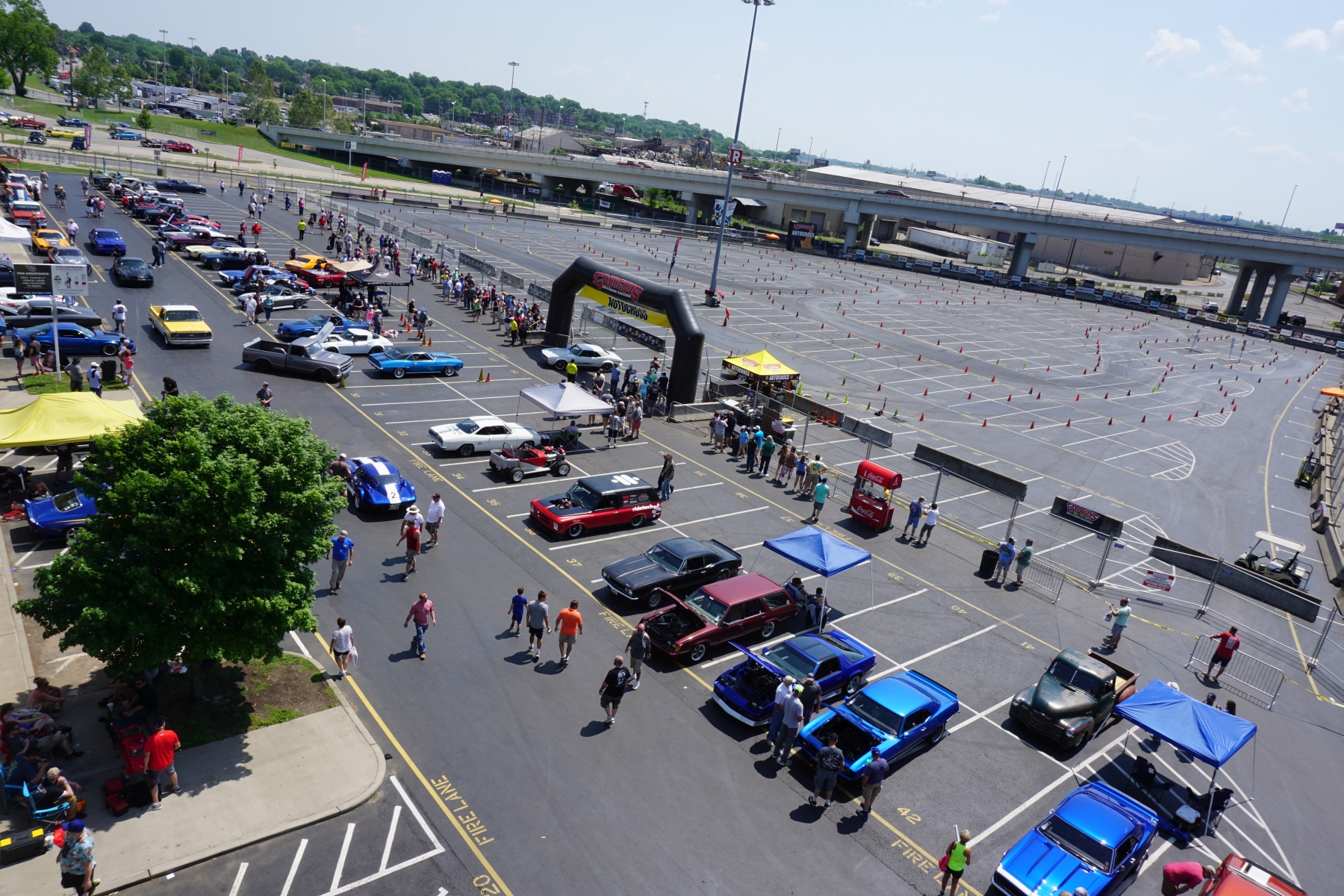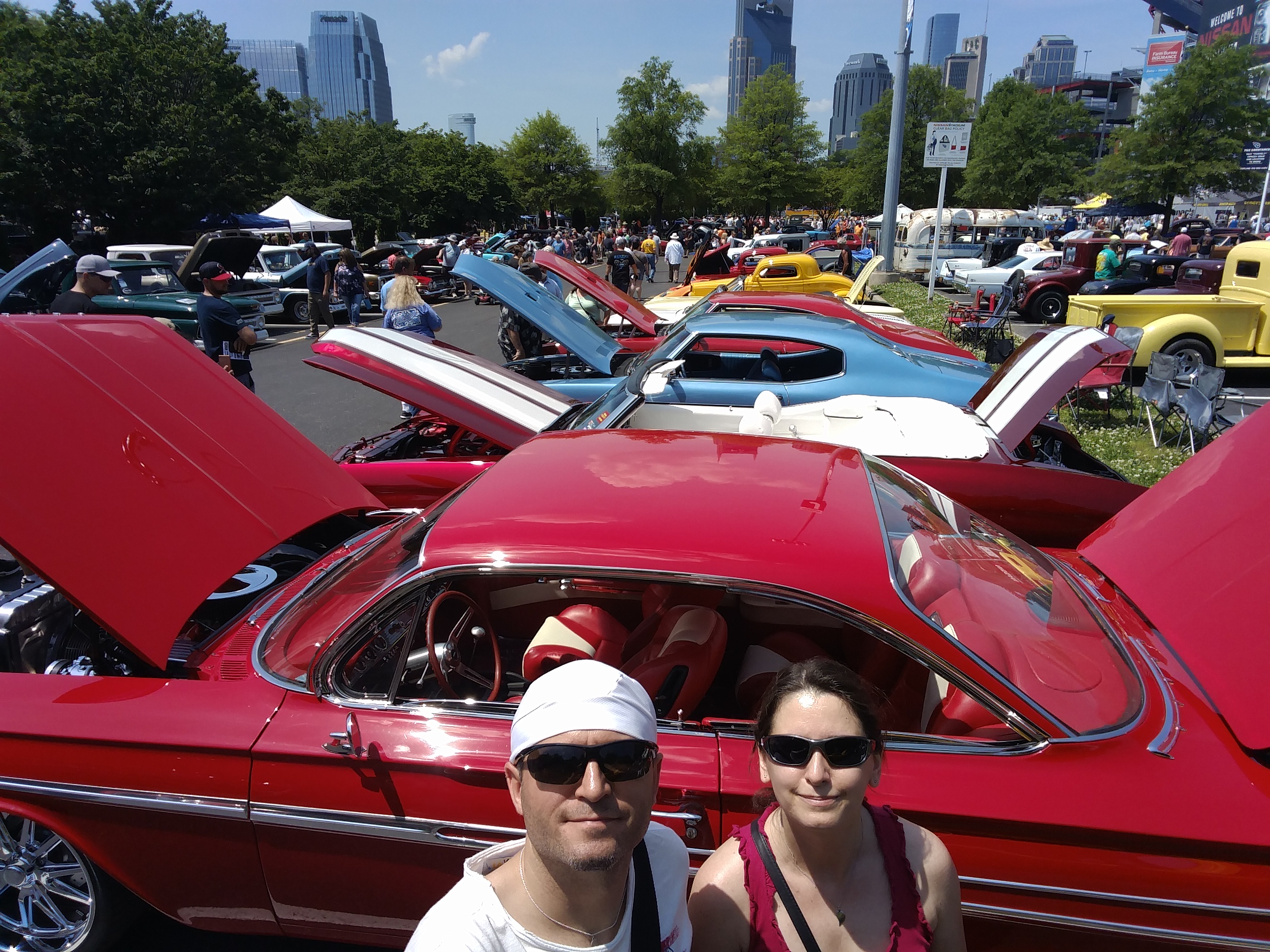 Dann hören wir Musik und Motoren. Wir gehen weiter und sehen, dass heute eine Autoshow mit Autocross-Rennen stattfindet – was für ein Zufall. Wir schauen kurz beim Rennen zu, dann schlendern wir durch die Reihen und bewundern die unterschiedlichen Gefährte.