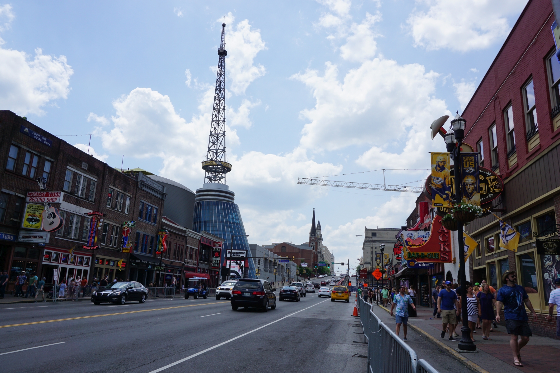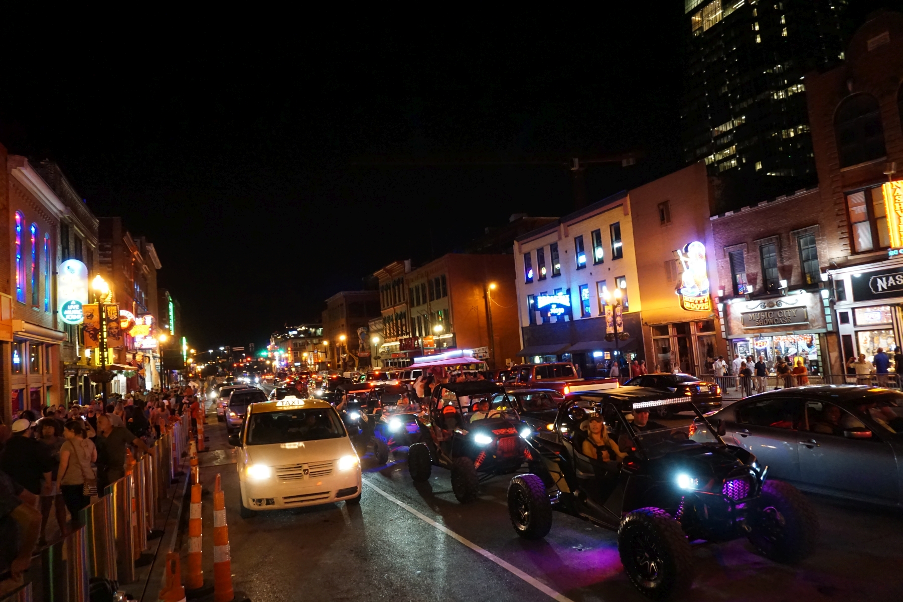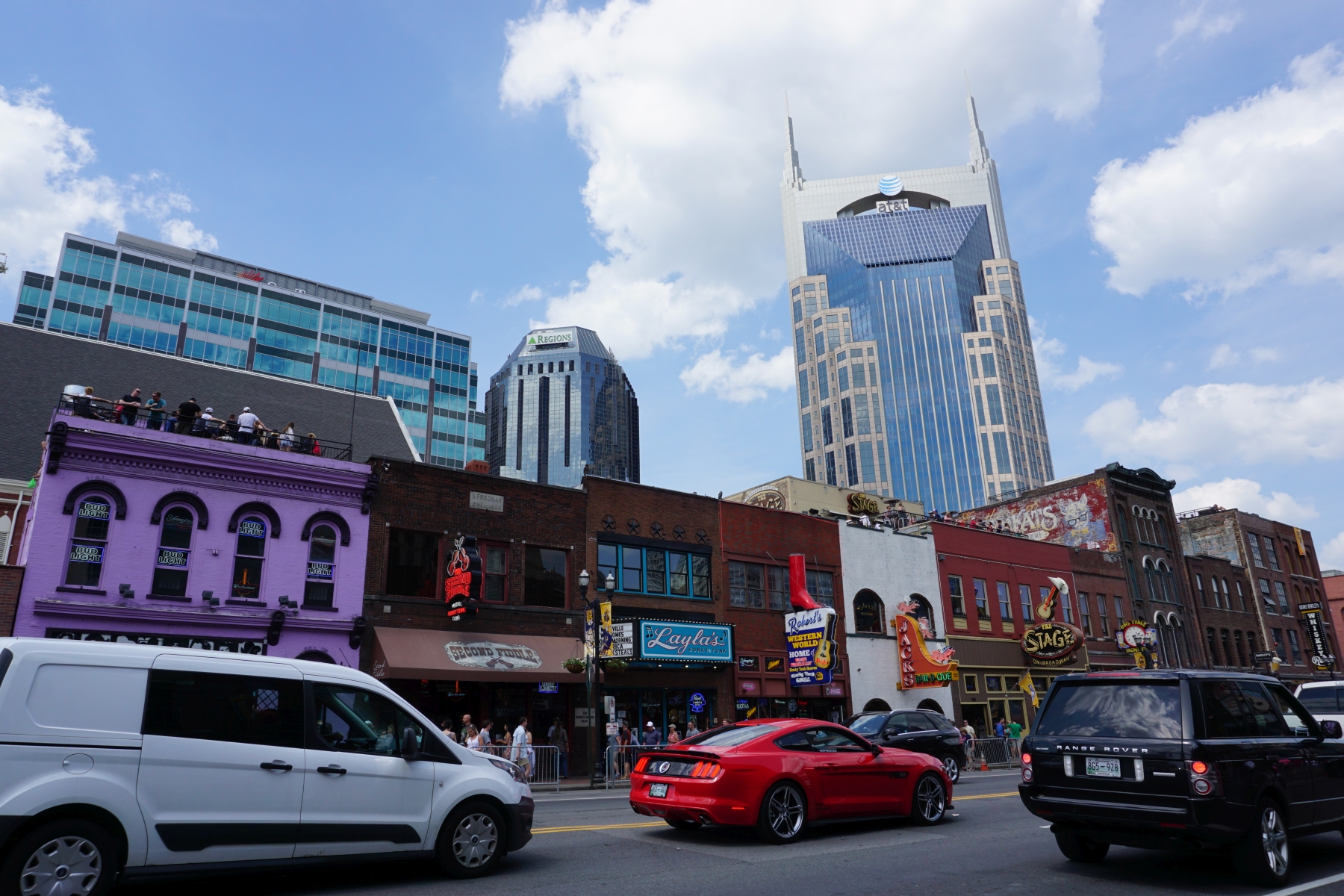 Dann stürzen wir uns ins Nachtleben von Nashville. Der Broadway hat sich in eine Partymeile verwandelt, wie wir es nicht erwartet haben. Überall Musik, Lichter, Partystimmung! Und der beleuchtete Batman wacht über all dem Treiben.