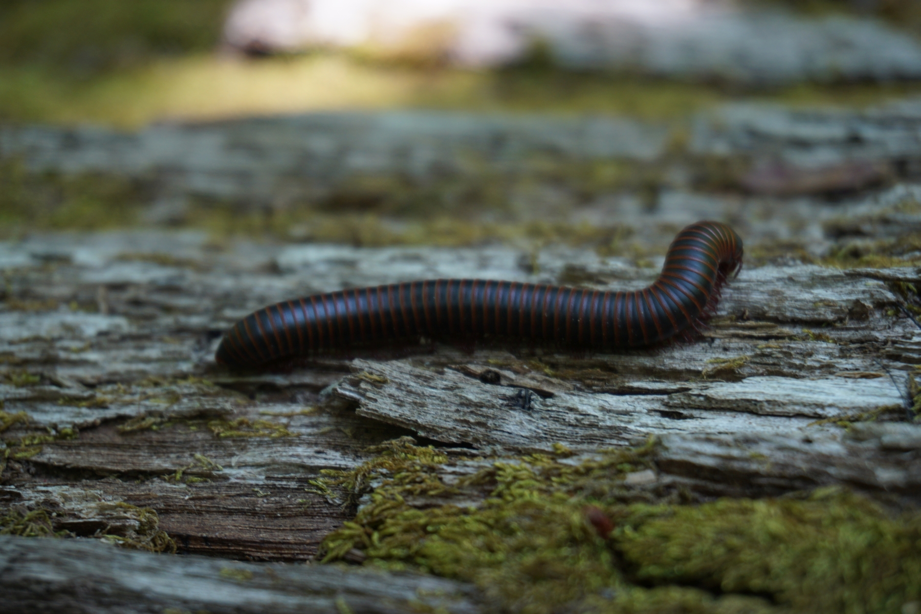 Wir umrunden den Wasserfall bzw. den Pool und bestaunen die Stelle, wo Szenen aus dem Film „Jungle Book“ gedreht wurden. Da das Wasser dann scheinbar unterirdisch weiterfließt, wollen wir selbstverständlich wissen, wohin. Wir entdecken den Fluss ein paar Meter weiter und uns begegnet ein kleiner Freund mit recht vielen Füßen.