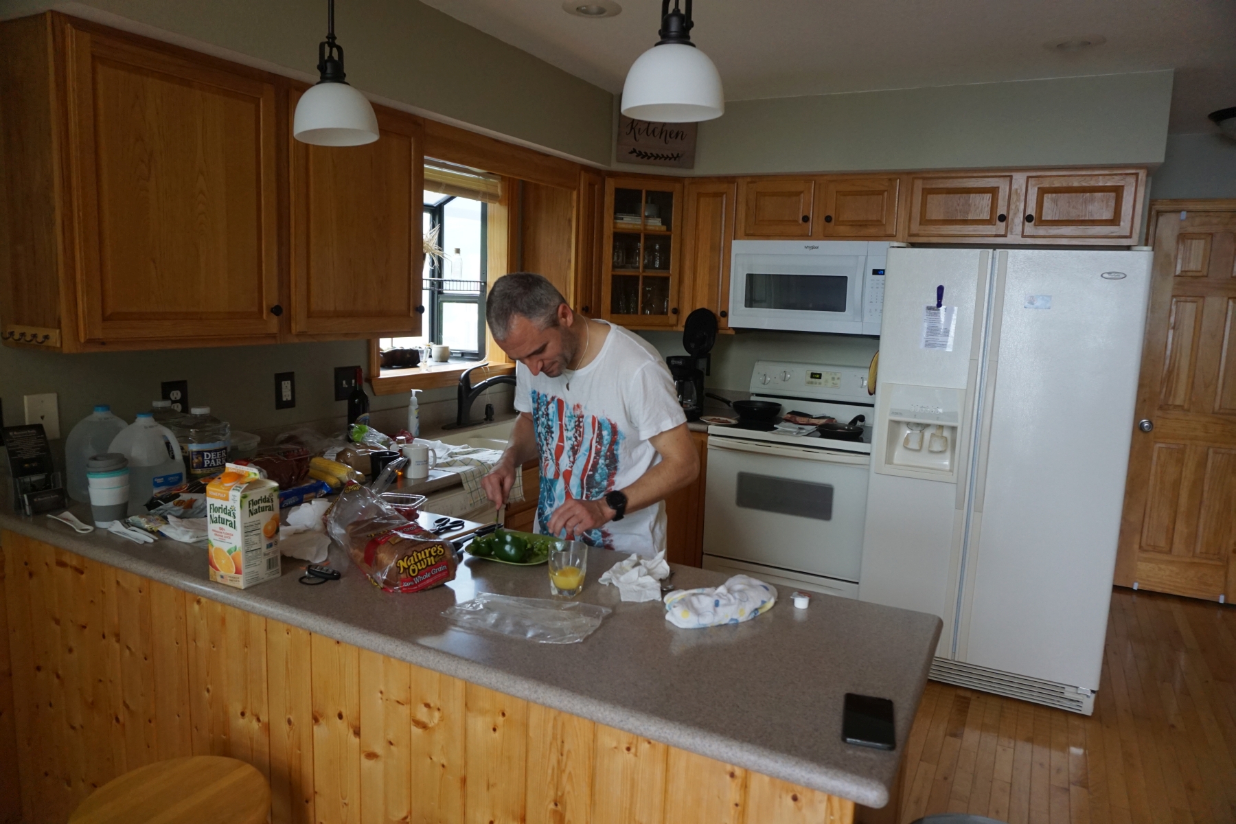 Nachdem es regnet und der Wetterbericht keine Besserung ansagt, schlafen wir sehr lange. Erst um 12 Uhr gibt es Frühstück.