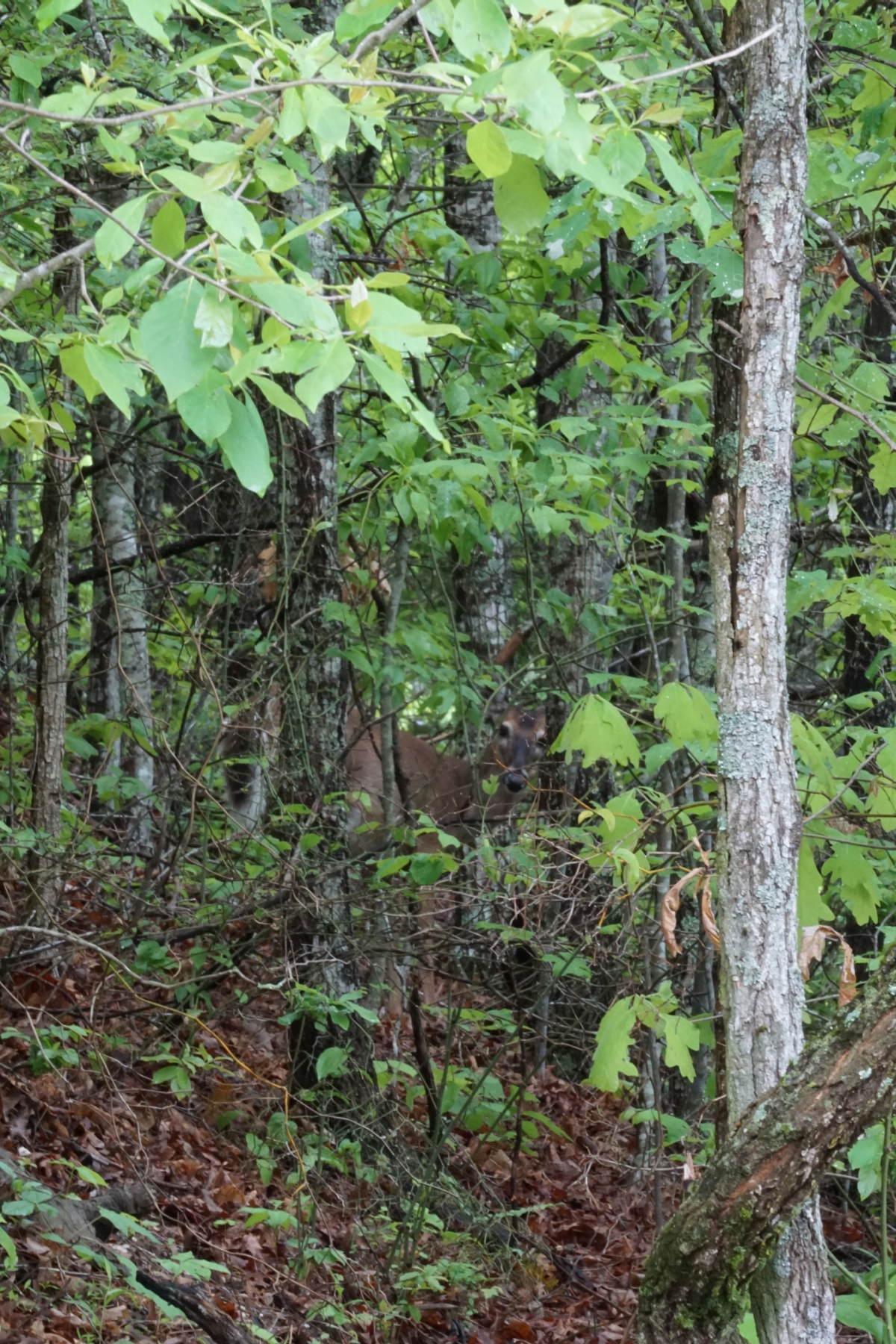Dann besucht uns ein Reh und wir sehen ihm beim Fressen zu.