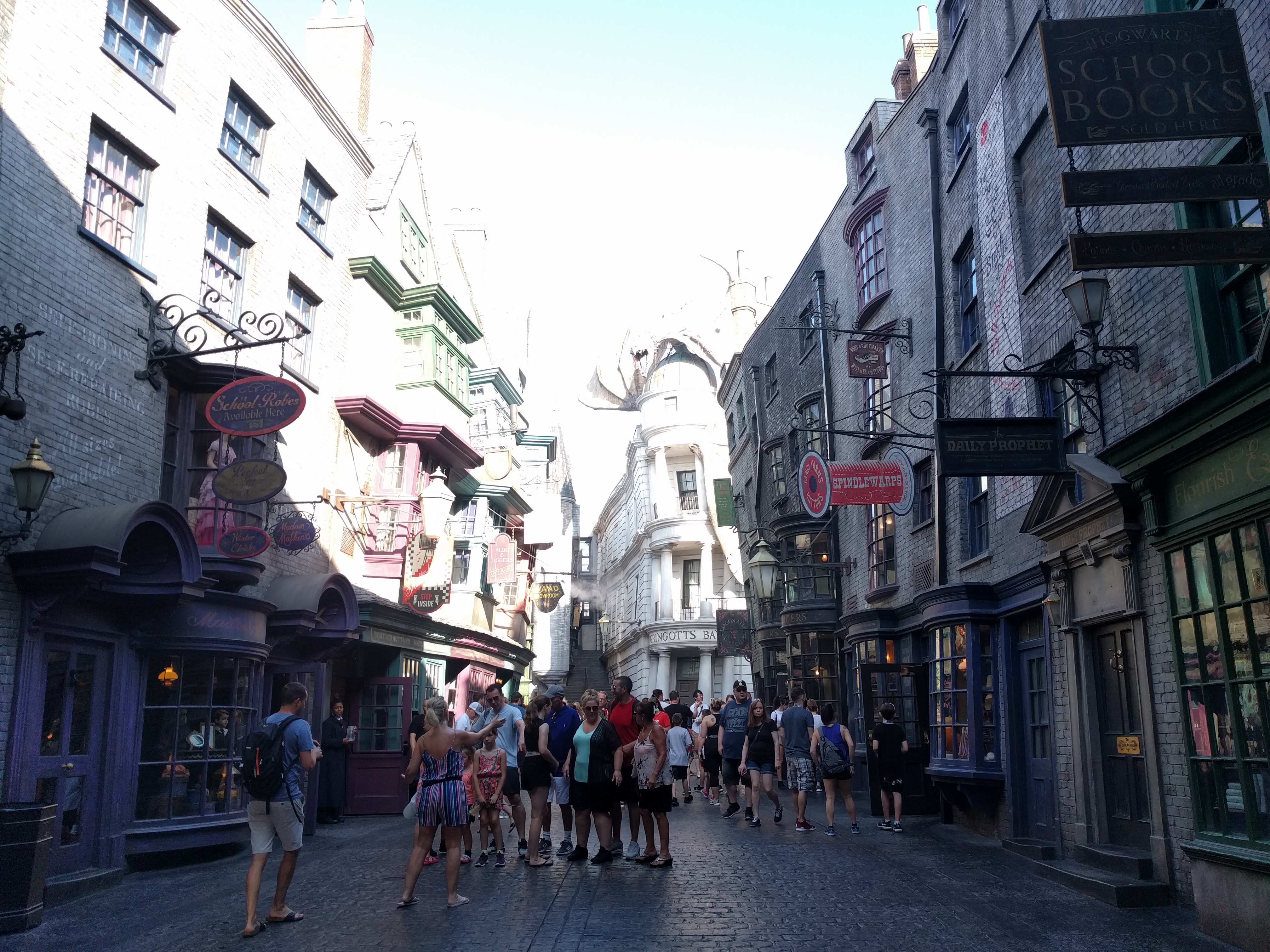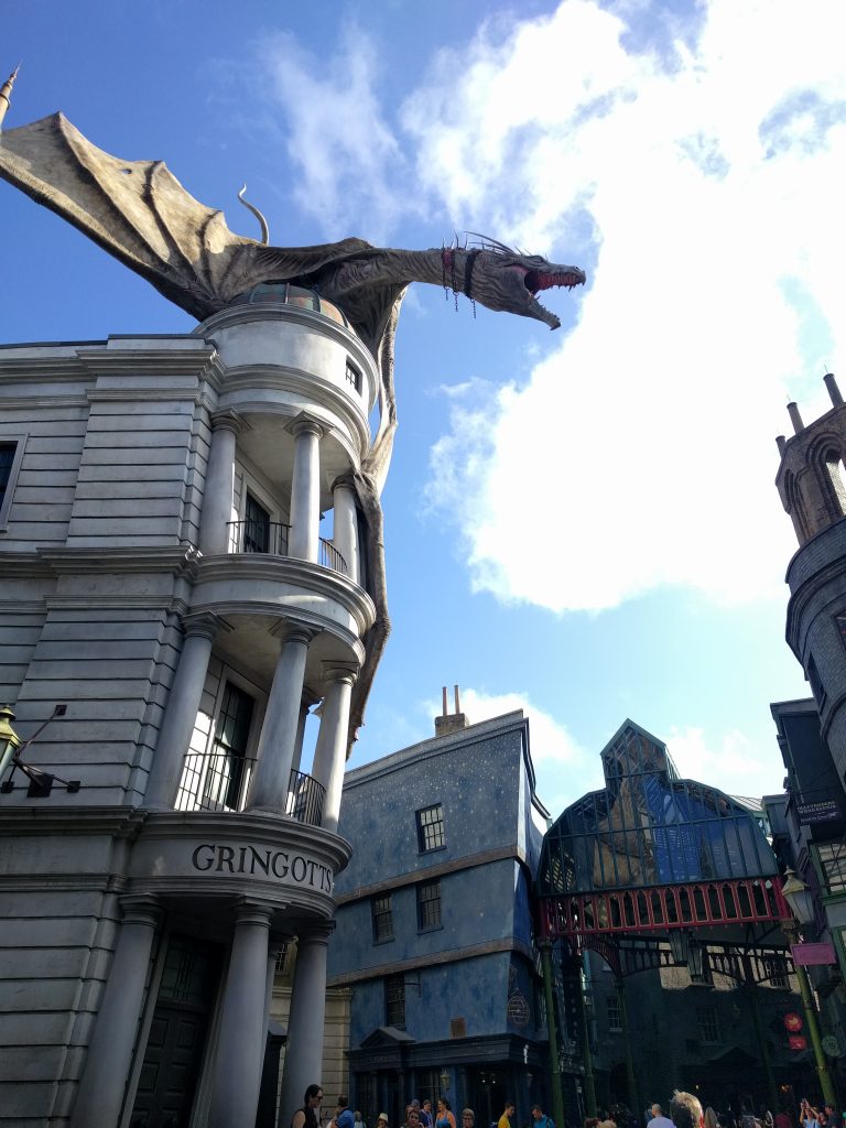 Heute läutet der Wecker sehr früh, denn wir wollen die Extra-Stunde, die wir aufgrund unseres Hotels haben, im Park nutzen. Also sind wir um Punkt 8 Uhr im Park und lassen uns gleich mal zu Minions ausbilden. Dann geht es in die Welt von Harry Potter und wir flüchten aus Gringotts. Ein Wahnsinn sind immer die „Wartebereiche“ zu den Rides. Hier wandert man durch eine große Marmorhalle mit Kristallleuchtern und Kobolden – die Wächter des Geldes in der Welt der Zauberer.