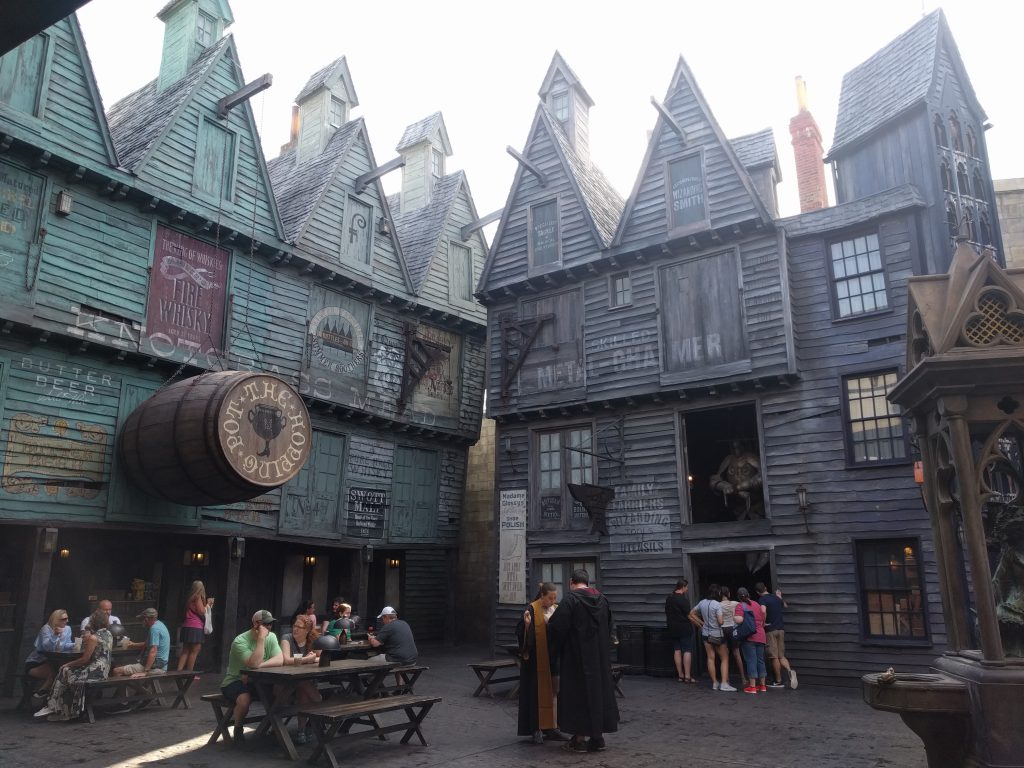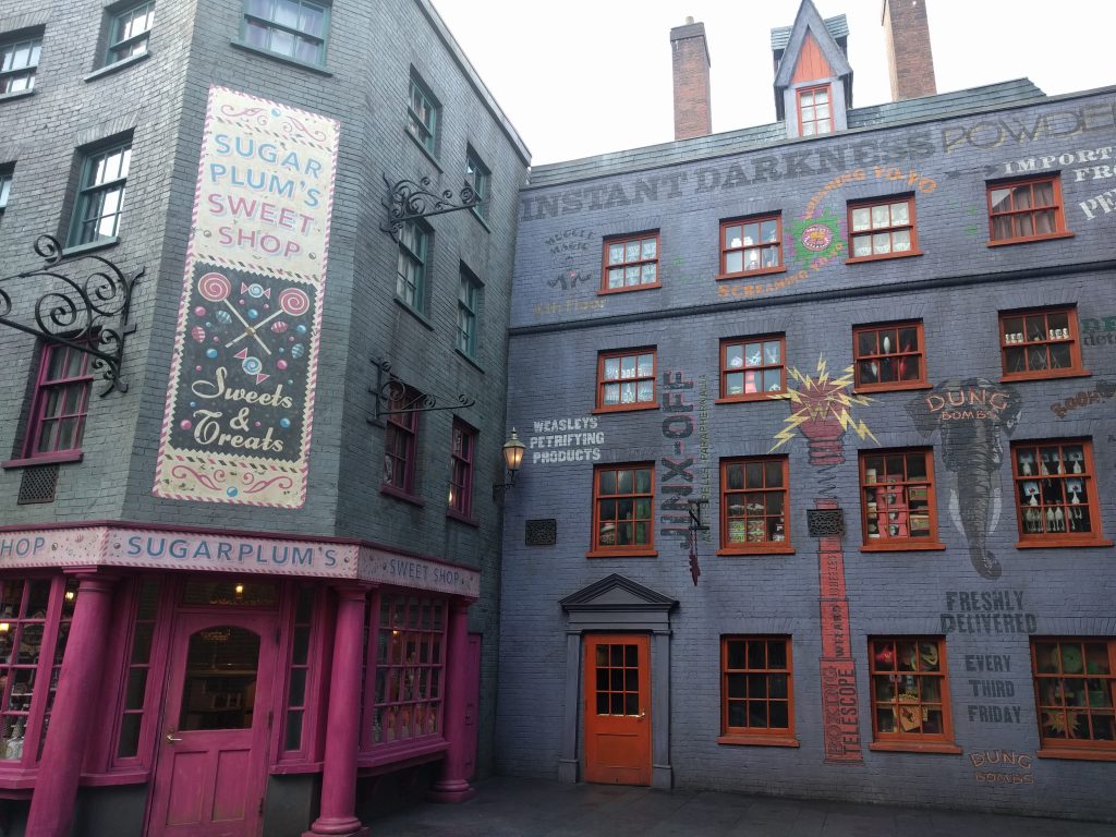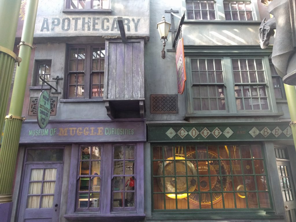 Auch in den beiden Harry-Potter-Welten schauen wir etwas genauer hin. Zuerst gehen wir in London in die Winkelgasse. Hier finden wir Gringotts, Olivander’s und viele andere magische Läden.