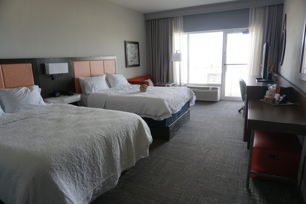 Nocheinmal etwas mehr als eine Stunde benötigen wir, um unser Hotel in Pensacola Beach zu erreichen. Das Hampton Inn Pensacola Beach hat perfekten Blick auf den Strand.