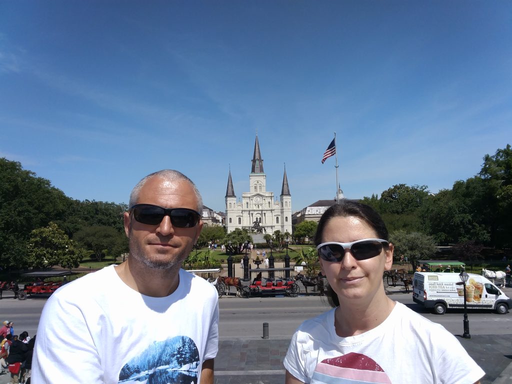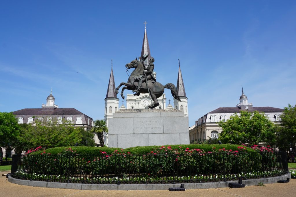 Am Weg zum Hafen kommen wir auch beim Jackson Square vorbei. Ein kleiner Park lädt zum Verweilen ein, es gibt eine eine große Statue von Andrew Jackson und eine wirklich bezaubernde Kirche.