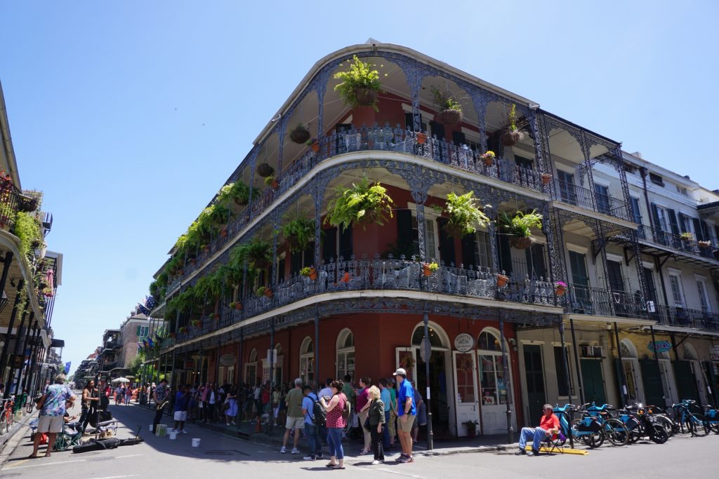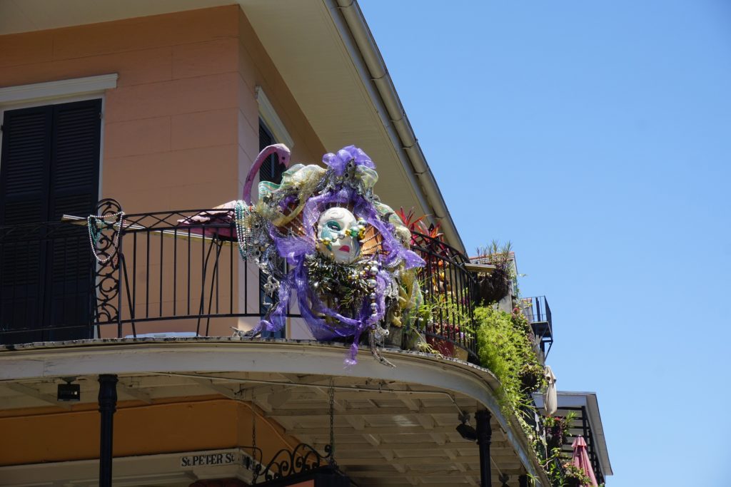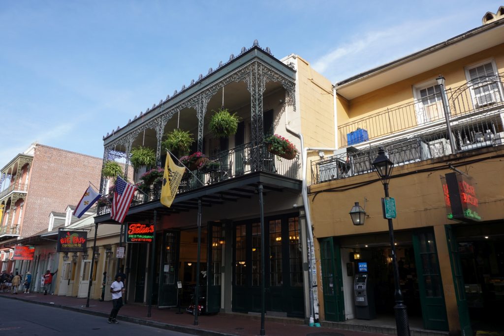 Unser Hotel liegt mitten im French Quarter. Darum starten wir mit einem Spaziergang durch die Gassen. Auffällig sind die teils schön geschmückten eisernen Balkone.