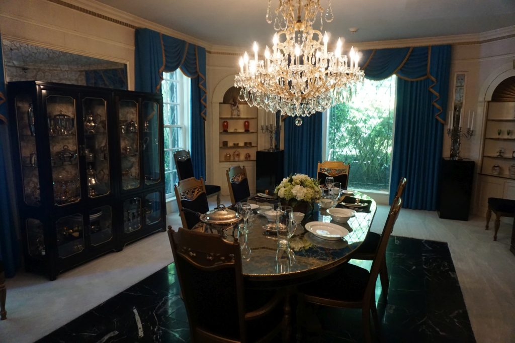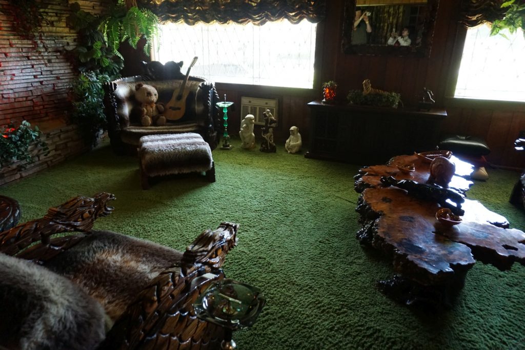 Dort sehen wir sein Wohnzimmer, sein Esszimmer (das heute von Priscilla immernoch genutzt wird), die Küche, das Billiardzimmer,… und das Dschungelzimmer. Hier hat Elvis angeblich gerne gefrühstückt und viele Freunde empfangen.