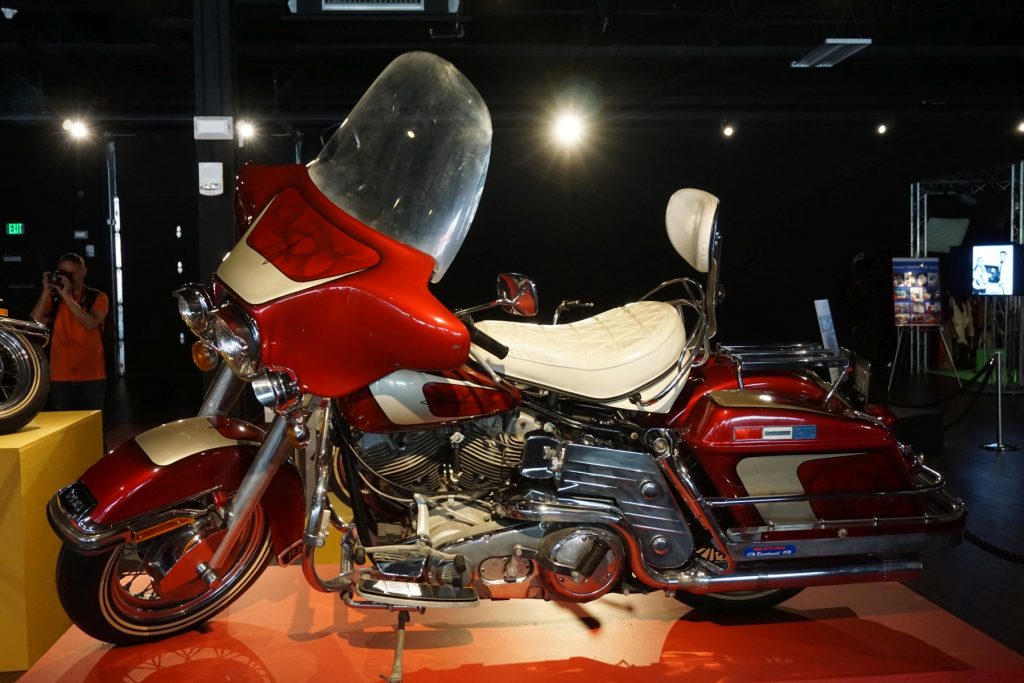Zuerst ist seine Auto und Motorradsammlung ausgestellt. Das Highlight ist selbstverständlich der rosa Cadillac aus 1955. Aber auch Mercedes, Ferrari und Rolls Royce gehören dazu. Unter den Motorrädern finden sich zwei Harley Davidson. Auch Boote, ein Traktor, ein Schneemobil sowie 2 Golfcarts sind ausgestellt mit denen er auf der Straße vor seinem Haus immer Rennen mit seinen Freunden gefahren ist.