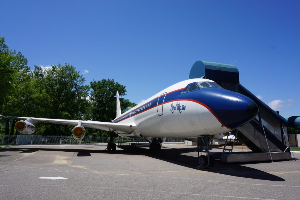 Der letzte Bereich zeigt seine beiden Flugzeuge. Die umgebaute Boing war sein zweites Graceland und nur mit den feinsten Stoffen und sehr exklusiv eingerichtet.
