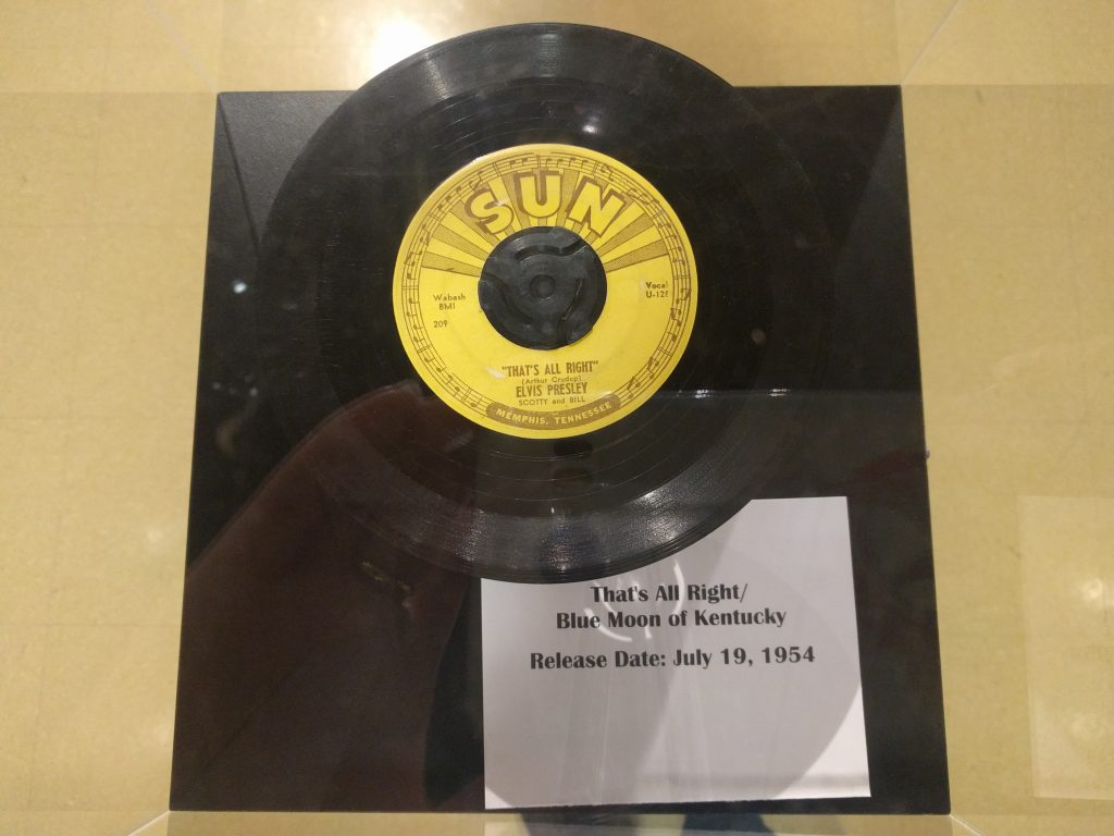 Nun gehen wir in den Ausstellungsbereich zur Geschichte seiner Musik. Wir starten bei Sun Records, dem Label unter dem seine erste Schallplatte veröffentlicht wurde. Man sieht das Tonstudio, seine ersten Gitarren und den Radiosender, der seine Musik spielte. Hier sind unter anderem die meisten seiner goldenen und platinen Schallplatten ausgestellt. Unter all den vielen hängt auch eine aus Österreich.