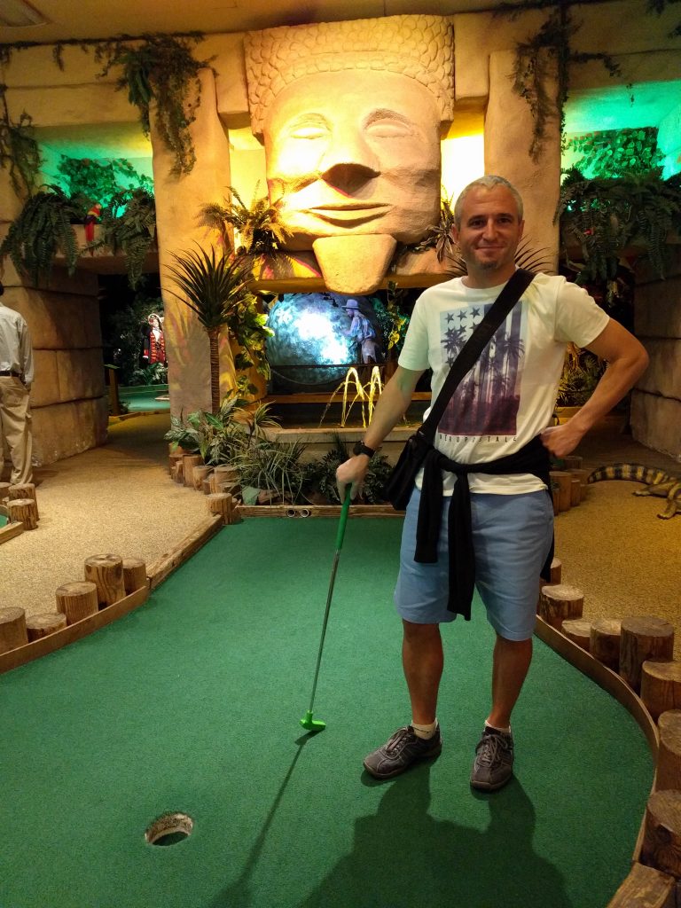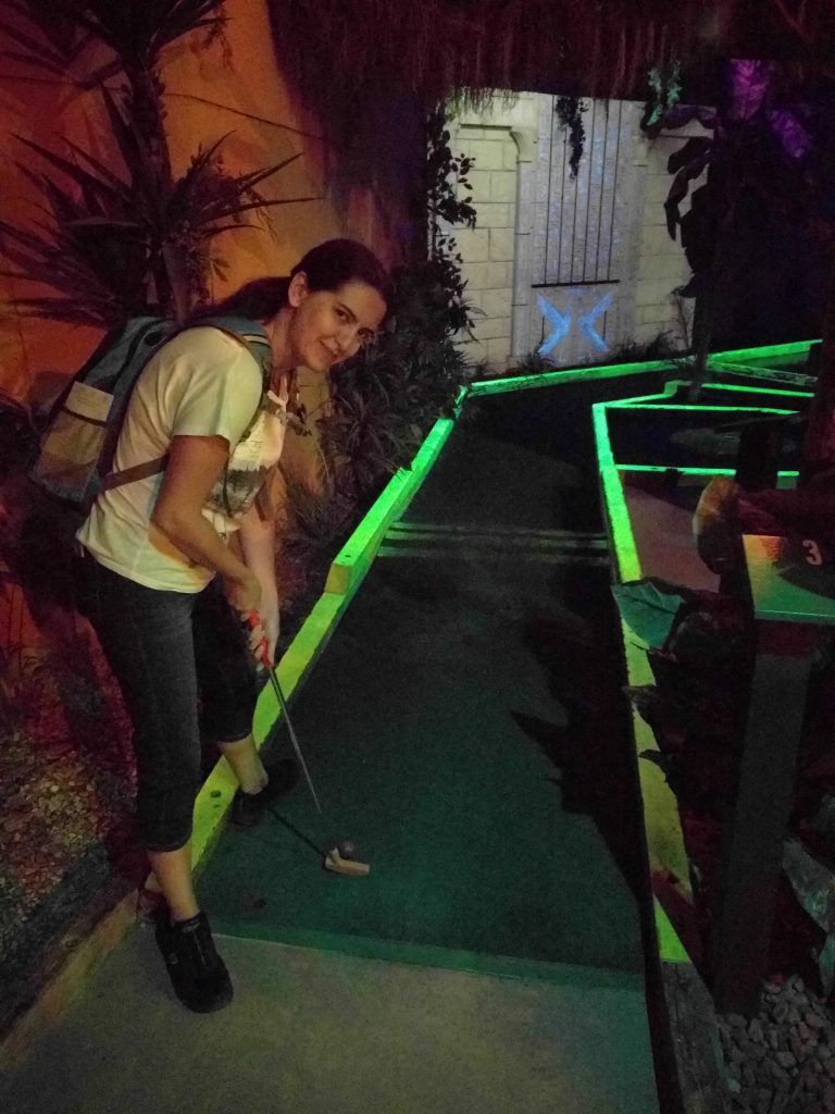 Abends ist hier ordentlich was los! Wir probieren ein paar Minigolf-Bahnen sowohl Indoor als auch Outdoor aus. Am coolsten fanden wir die mit Schwarzlicht!