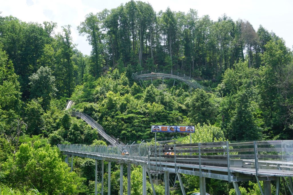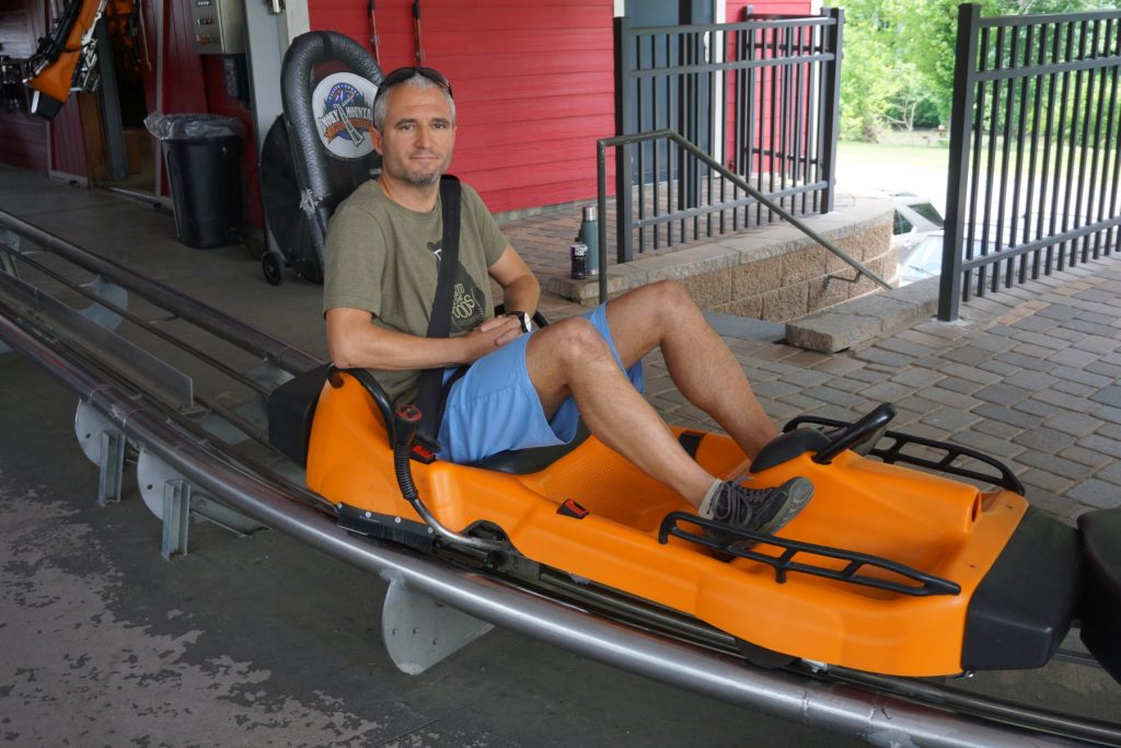 In Pigeon Forge kann man viel erleben: Shows, Arcades, und vieles mehr. Martin möchte aber nochmal den Smoky Mountain Alpine Coaster vom letzten Jahr hinunterflitzen. Das ist mit 1,2 km die längste Berg-Rodelbahn in den USA und man erreicht dabei eine Geschwindigkeit von ca. 43 km/h.