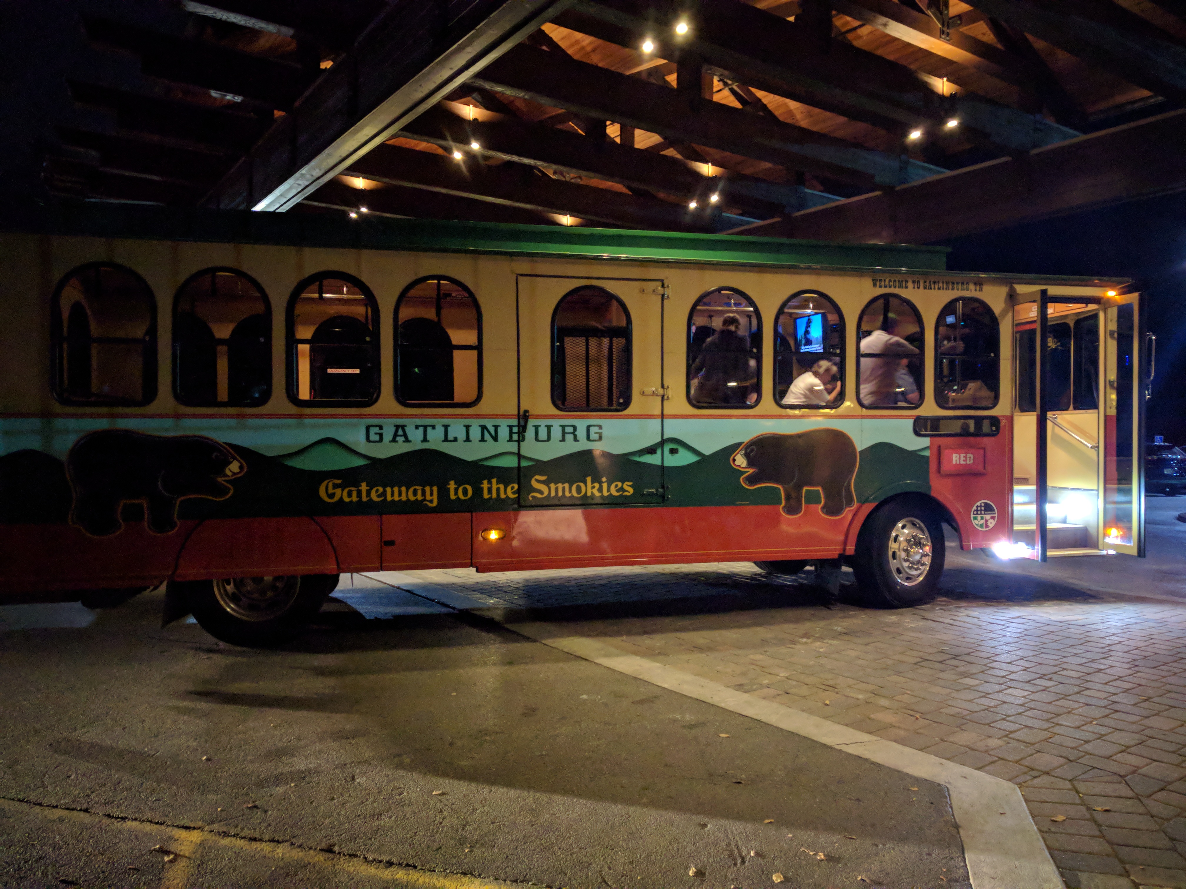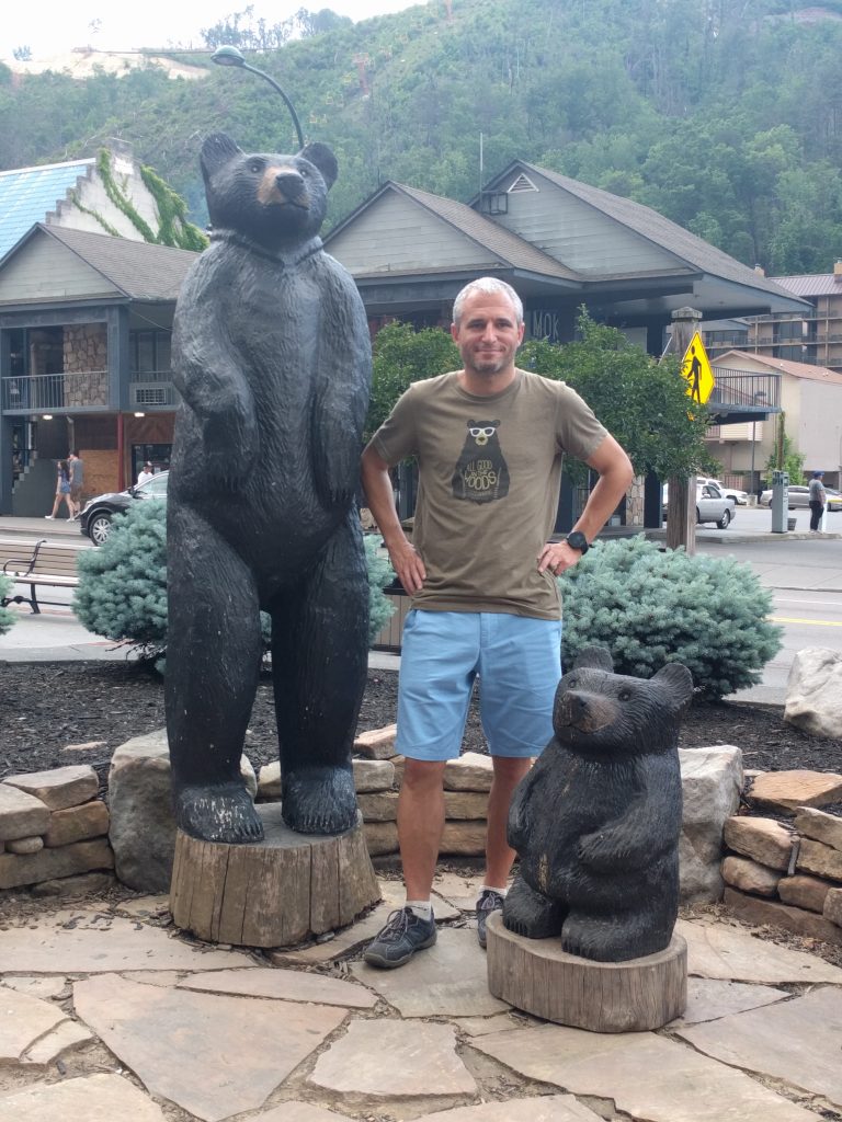 Unser Hotel liegt am Rand von Gatlinburg, daher fahren wir mit einem Trolley ins Ortszentrum. Für 50 Cent kann man hier bequem in einem alten Gefährt ins Zentrum gelangen. Auf der Hauptstraße reihen sich Shops, Restaurants und viele Vergnügungsmöglichkeiten aneinander. Wir schlendern an den Geschäften vorbein und wandern durch die Läden. Es gibt auch eine kleine Mall mit allerlei Geschäften. Überall sind Bären zu finden – mal groß, mal klein.