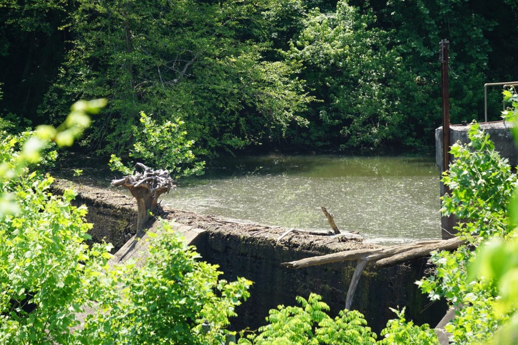 Dann gehen wir zu dem Damm über den Katniss in den Wald gelaufen ist. Leider können wir dort nicht hingehen, aber aus der Ferne kann man ihn gut erkennen. Sie erzählt uns auch, dass man in der Szene danach den Wald aus dem DuPont State Park sieht, den wir letztes Jahr besucht haben.