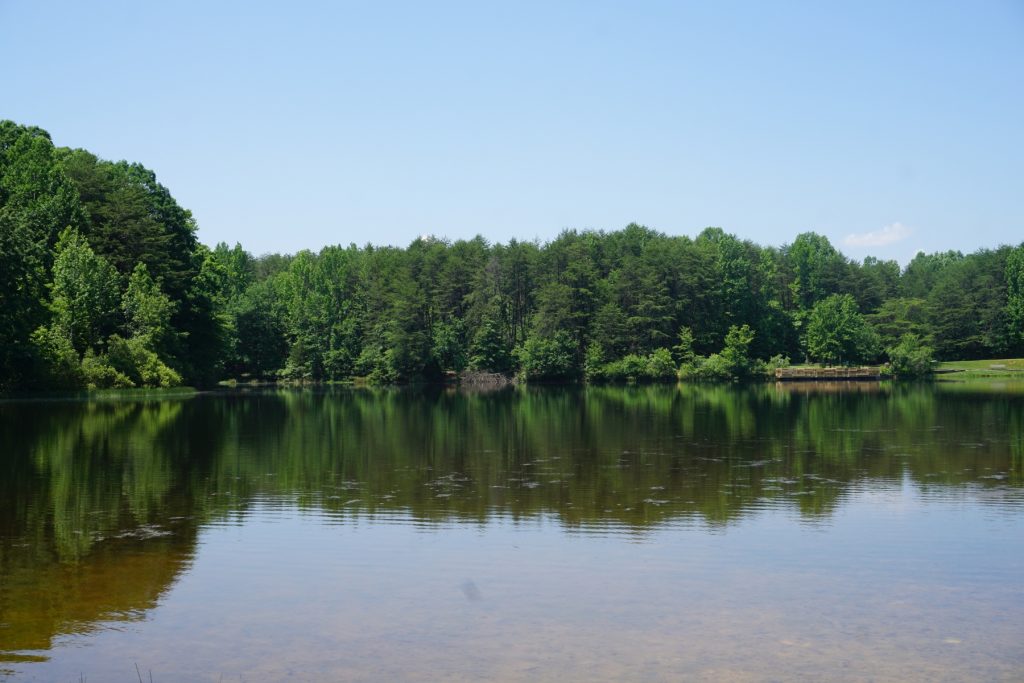 Zuerst spazieren wir eine Runde mit 1,3 km um den See. Hier ist es sehr still. Wir treffen Angler, eine Krähe, verscheuchen ein paar Frösche, Eidechsen und Schildkröten und auch ein paar Eichhörnchen. Wir schrecken auch eine schwarze Schlange auf vor der wir ganz schön zurückschrecken.