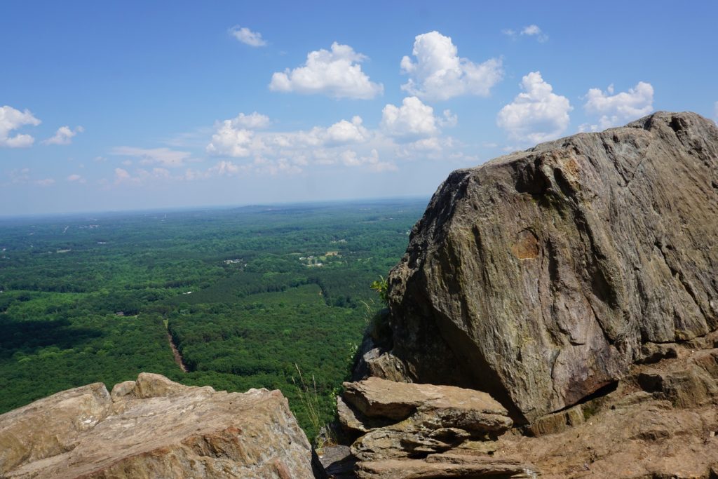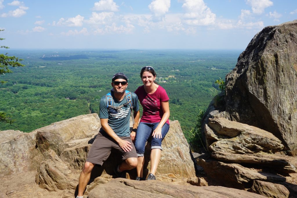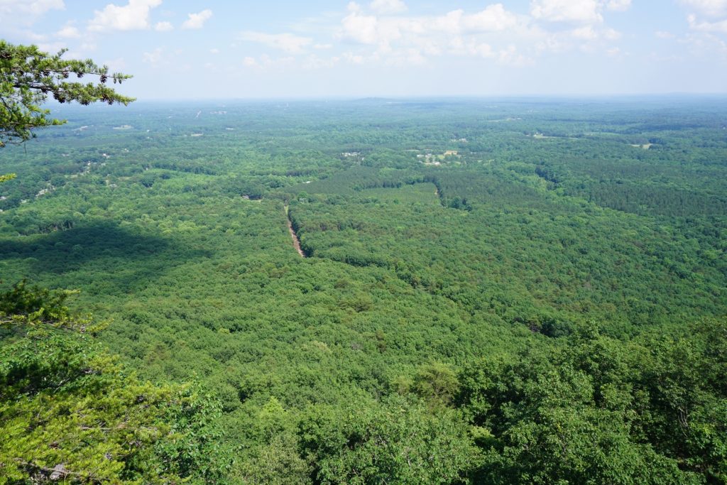 Nach der gemütlichen Runde gehen wir den Backside Trail. Der Weg führt 1,4 km recht steil hinauf auf den Crowders Mountain. Am Ende muss man 336 Stufen erklimmen bevor man die tolle Aussicht bis nach Charlotte genießen kann.