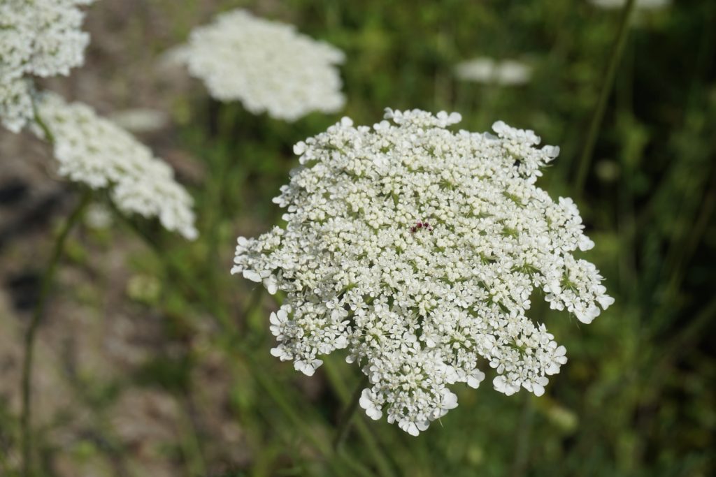 Dort zeigt sie uns auch die Blume mit der Katniss Rue bedeckt als sie stirbt. Es ist ein American Hogweed, das uns dann bei unseren Wanderungen ein paar mal auffällt.