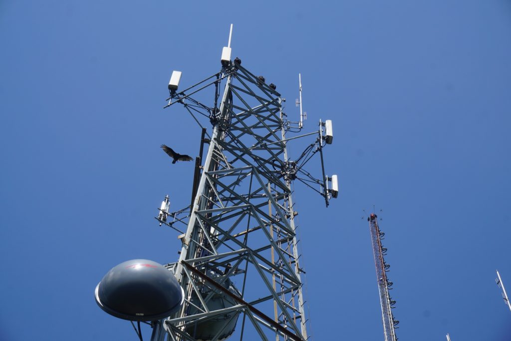 Hier steht auch ein Sendemast, der von schwarzen Vögeln als Aussichtsturm benutzt wird.