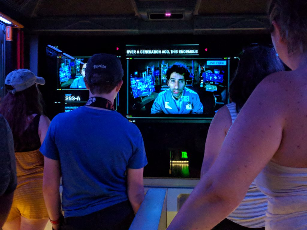 Unter Staunen über die phantastische Welt folgen wir der Schlange weiter bis zu unserem ersten großen Ziel: dem Ride Flight of Passage, der einen Flug auf einem Banshee verspricht. Hier ist schon das Anstellen und die Pre-Show sehenswert! Man wandert durch die Laboratorien, lernen etwas über die drachenähnlichen Banshee und wir sehen auch den ersten Na’vi. Nachdem wir einen passenden Avatar gefunden haben, werden wir verlinkt und dann geht es auch schon los.