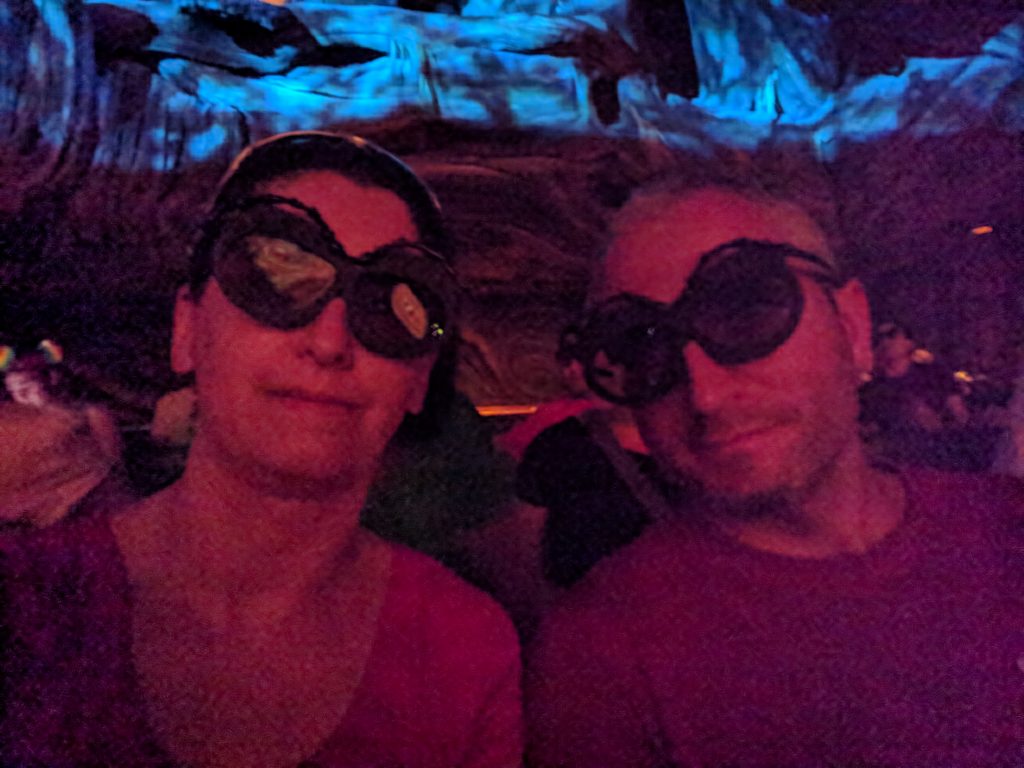 Nachdem es so richtig heiß ist, machen wir den zweiten Ride hier in Pandora. Beim Na’vi River Journey genießt man eine unterirdische Bootsfahrt über den Kapsavan River durch die Felsen und die bunt beleuchtete Welt von Pandora. Man hört Musik und Gesang und trifft am Ende sogar den musizierenden Na’vi. Hier könnt ihr mitfahren!