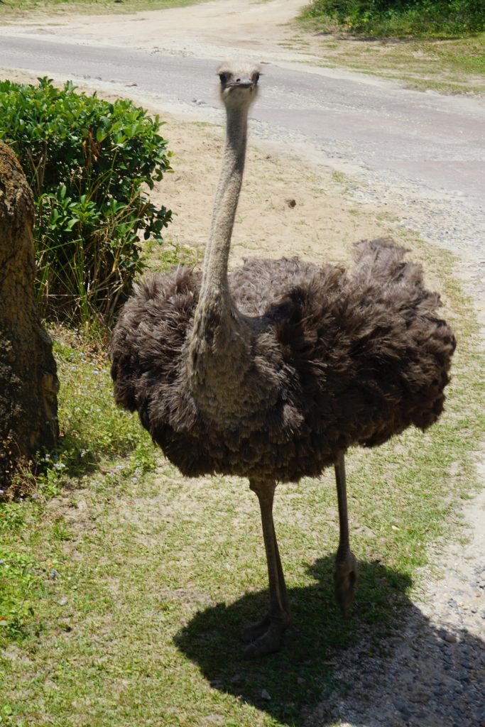 Während das Nashorn wie die meisten Tiere im Schatten döst liegen die Alligatoren in der Sonne, kämpfen die Rinder mit ihren riesigen Hörnern und die Flamingos baden im Wasser der Oase. Nur das kleine Elefantenbaby sowie die Giraffen-Kinder tollen herum. Vor dem Strauß müssen wir fast flüchten, denn er bewacht sein Nest.