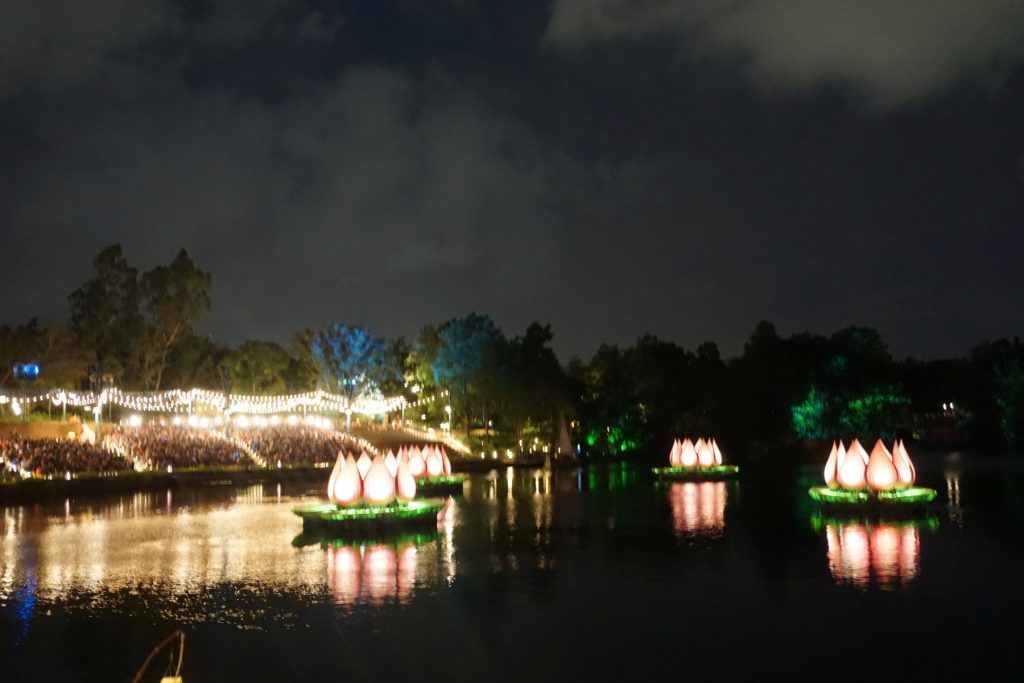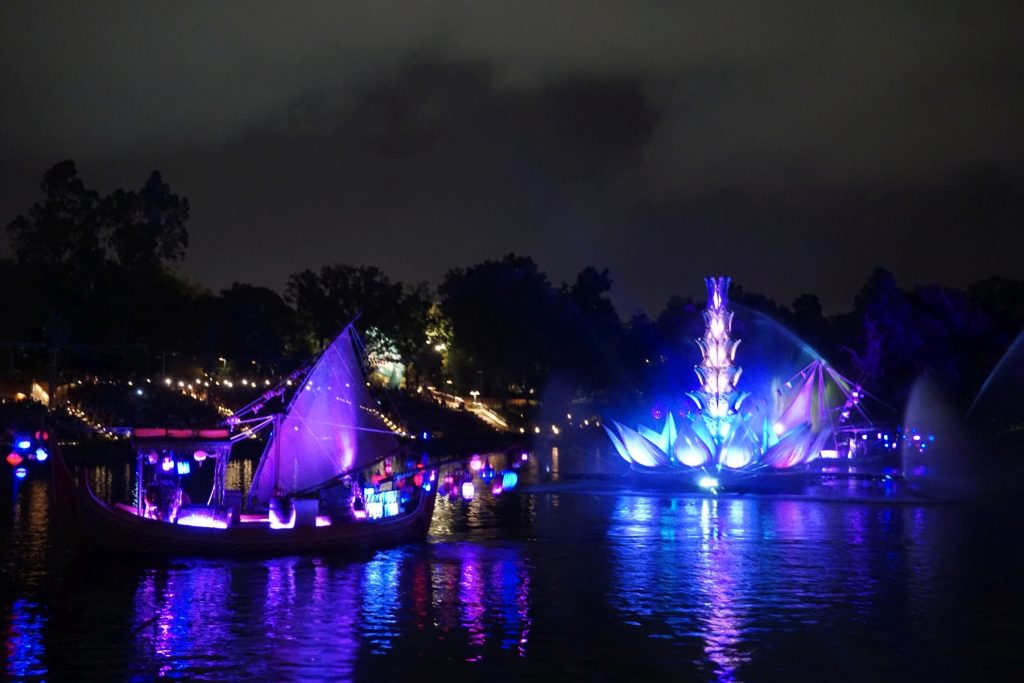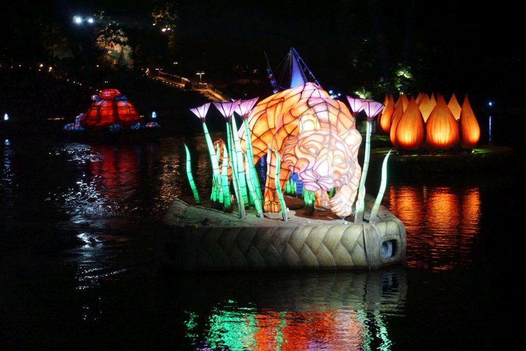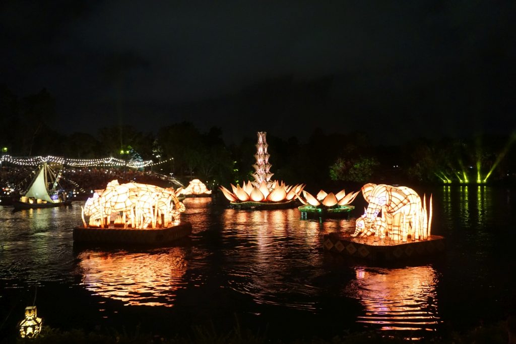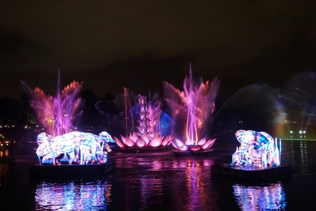Nun haben wir es schon eilig, denn gleich beginnt am See die große Abendshow Rivers of Light: We Are One. Hier fahren bunte Boote über den See, es tanzen Wasserfontainen und auf großen Wasservorhängen werden Tiere projiziert. Dazu gibt es eine schöne Geschichte von Tieren und Menschen und phantastische Musik.