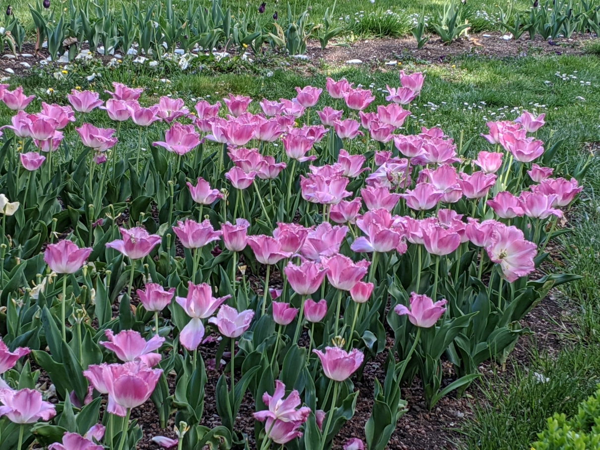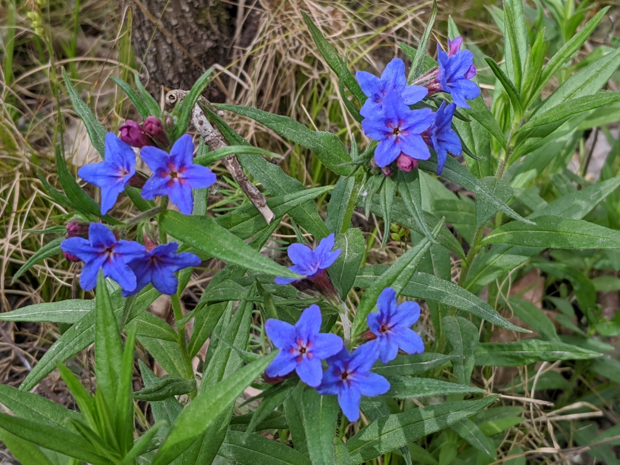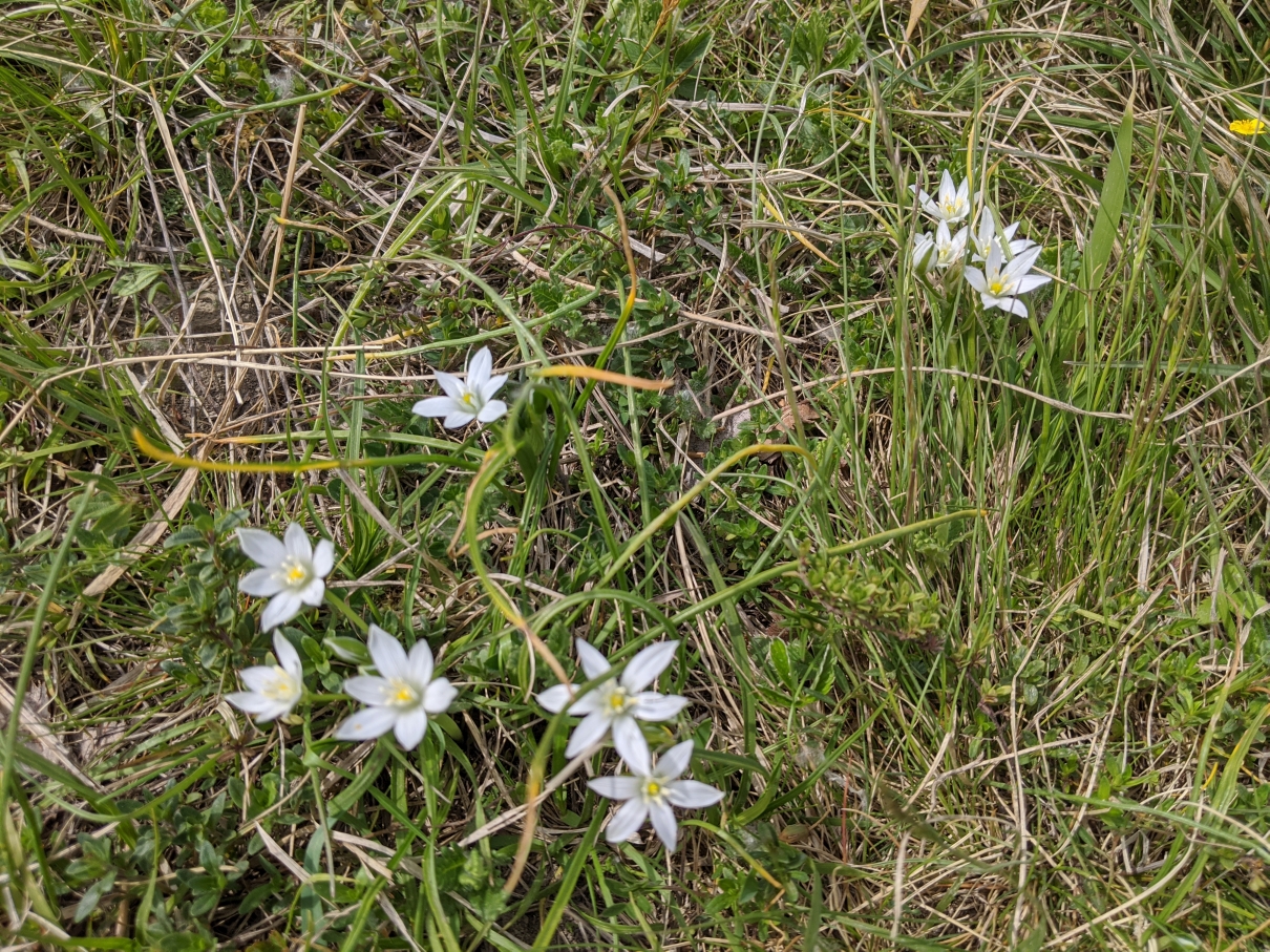 Am Rückweg sehen wir noch einige andere Blumen wie die weißen Milchsterne, eine einsame Tulpe und viele kleine blaue aber auch gelbe Blümchen am Wegesrand.