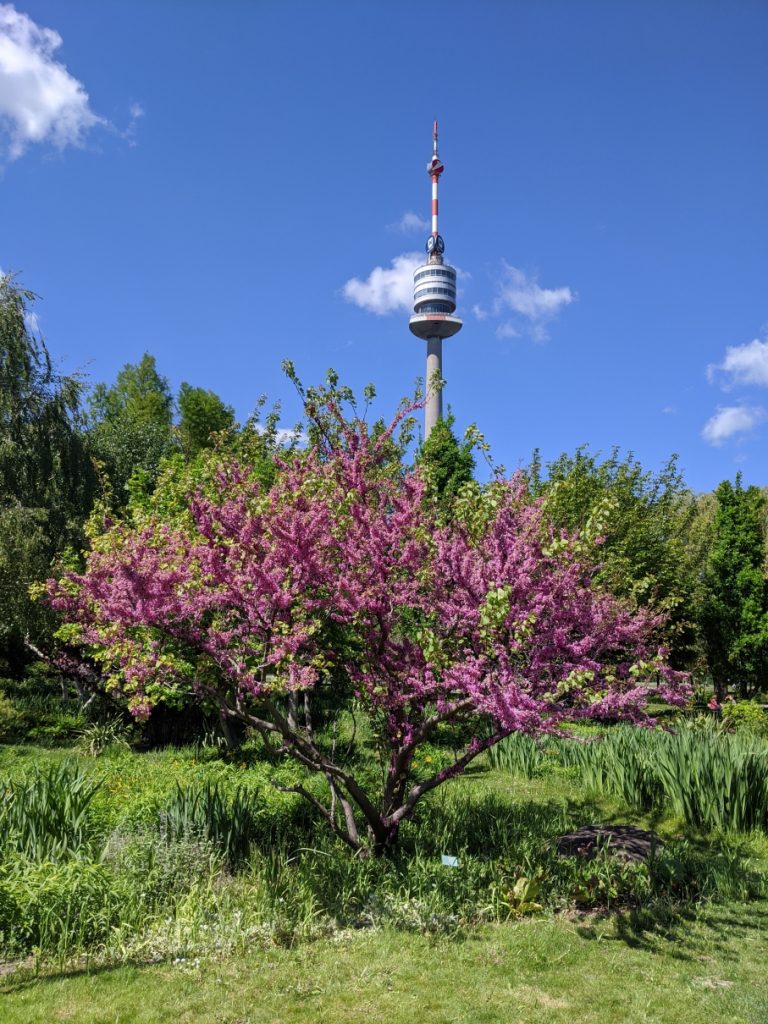 Auf unseren Reisen besuchen wir in den Städten gerne kleine Parks. Nachdem das Wetter in den letzten Tagen sehr einladend war, haben wir einen Spaziergang in den Donaupark gemacht. Dort findet man einige Blumen und Bäume, die gerade blühen, und der Ausblick auf den kleinen See ist auch immer toll.