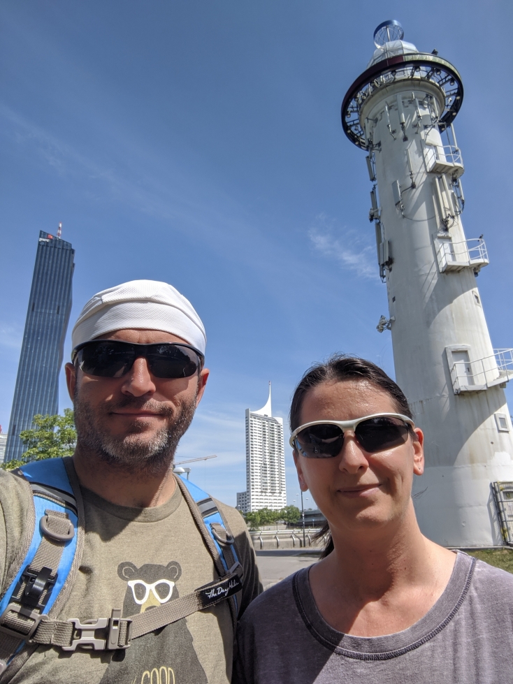 Im Hintergrund ist immer wieder der Donauturm zu sehen. Er wurde von 1962 bis 1964 anlässlich der Wiener Internationalen Gartenschau errichtet.