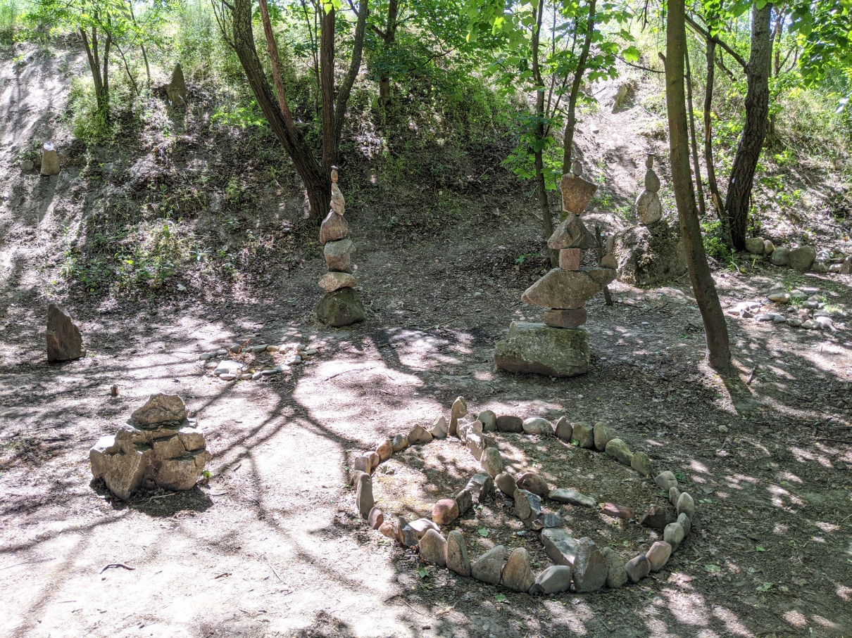 An einer Stelle im Wald wurde ein kleiner Steingarten gebaut.