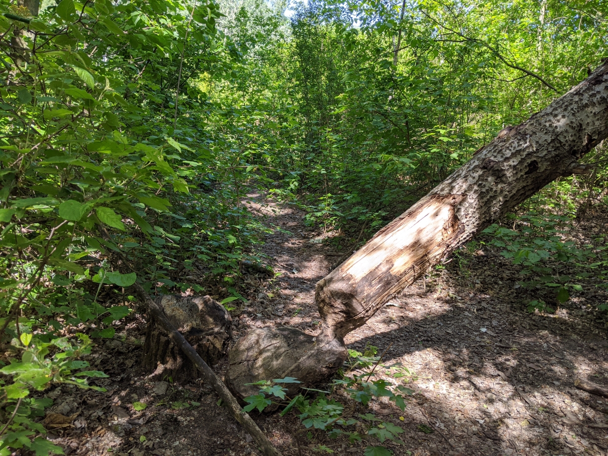 Am Weg findet man immer wieder umgestürzte oder zur Sicherheit umgesägte Bäume, aber auch jede Menge ausgehöhlter alter Bäume.