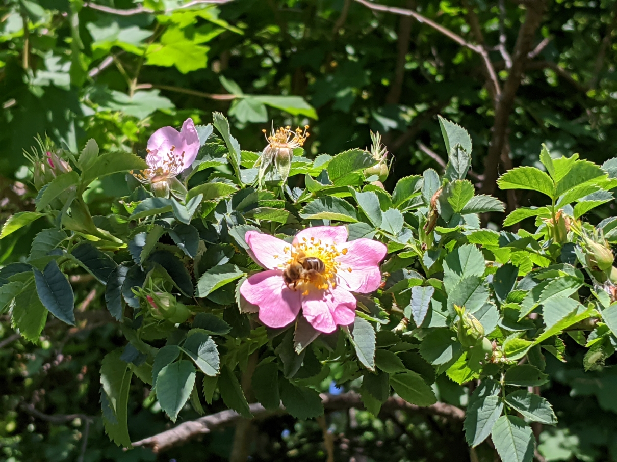 Wir sehen auch wieder einige sehr schöne Blumen und fleißige Bienchen aber auch die Spuren der hier lebenden Biber.