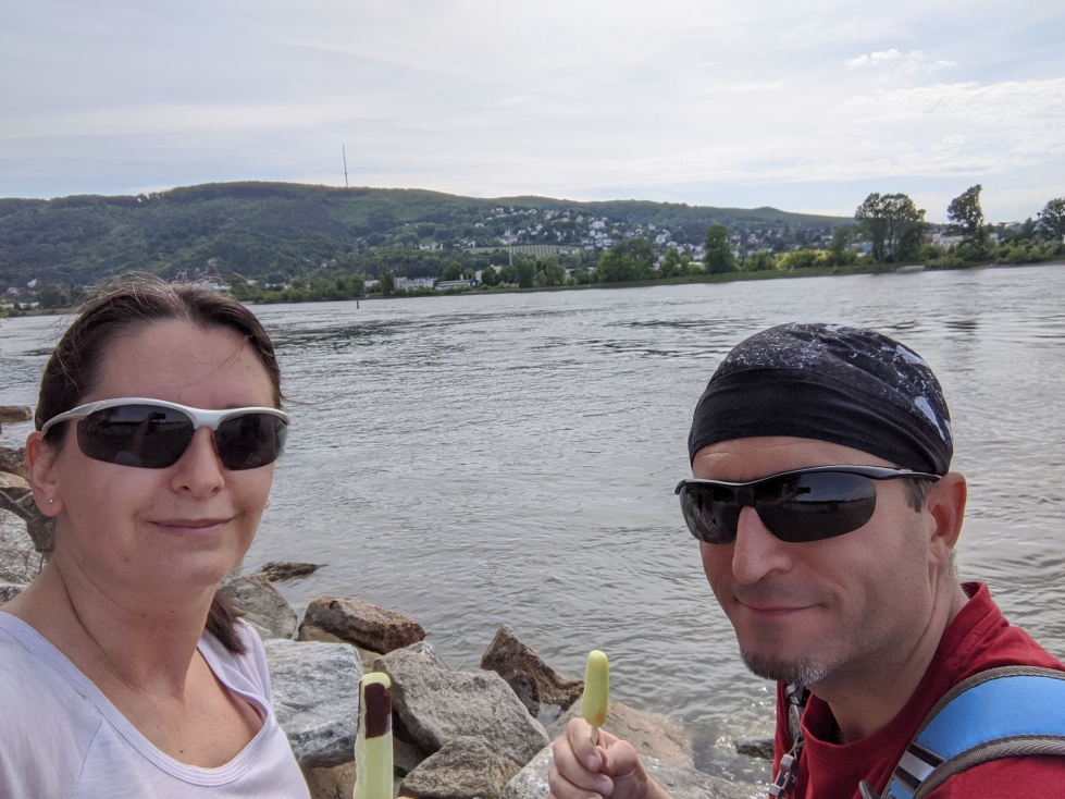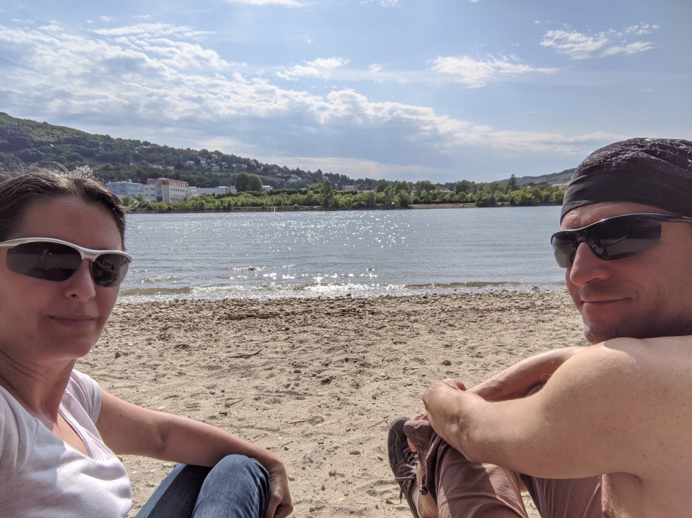 Wir holen unsere Räder aus dem Winterschlaf und radeln stromaufwärts. Ziel ist der oberste Punkt der Donauinsel mit dem Wehr. Dort essen wir ein Eis am Wasser und beobachten die vorbeifahrenden Schiffe. Martin rettet auch das Spielzeug eines weißen Schäferhundes.