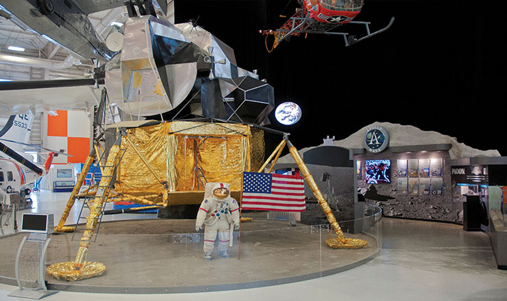 Zu sehen sind eine Mondlandefähre, ein Mond-Fahrzeug und eine Replika der Freedom-Kapsel. Auch ein Stück Mondgestein, welches Apollo 17, die vorerst letzte Mission zum Mond, mitgebracht hat. Ebenfalls ausgestellt ist die Skylab II Kapsel, die 1973 gleich mehrere Rekorde aufstellte: die längste Dauer eines bemannten Raumfluges, längste gereiste Strecke und größte Masse im All.