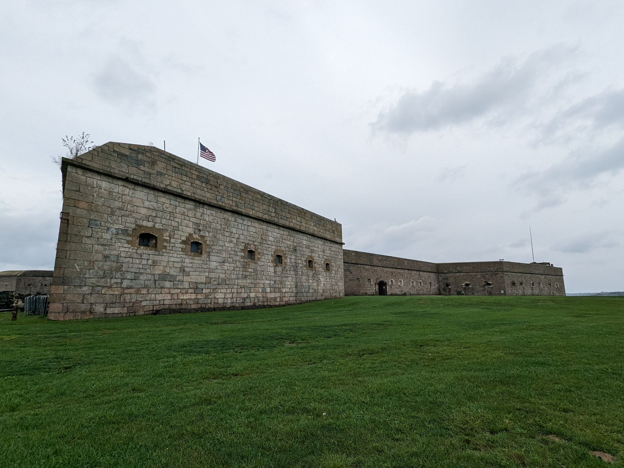 Nächster Stopp ist das Fort Adams, eine historische Befestigungsanlage aus dem 19. Jahrhundert. Es ist das größte Küstenfort in den Vereinigten Staaten und diente einst zur Verteidigung des Hafens von Newport. Wir spazieren einmal um das Fort und sehen uns den Segelhafen und die große Brücke an.