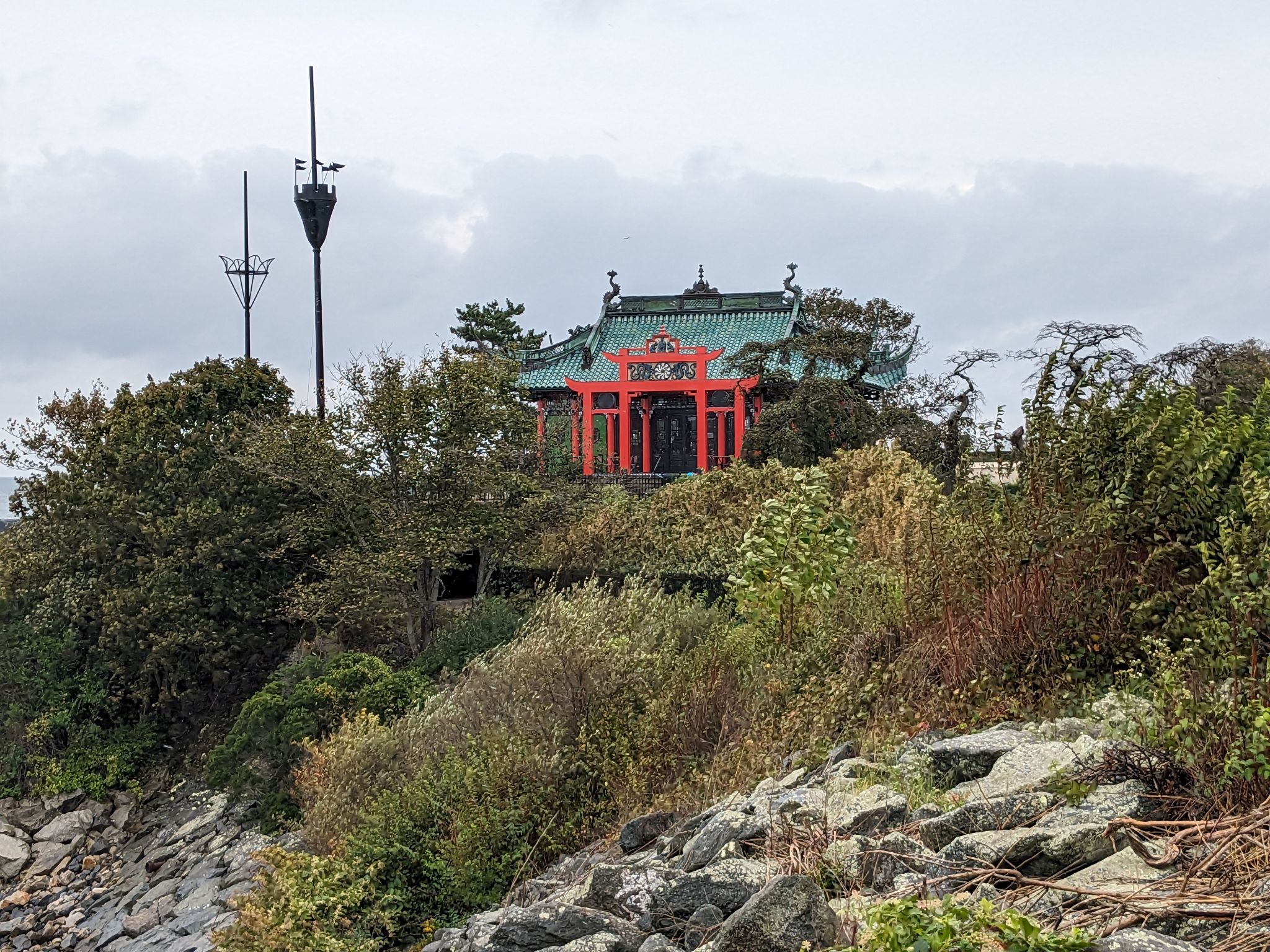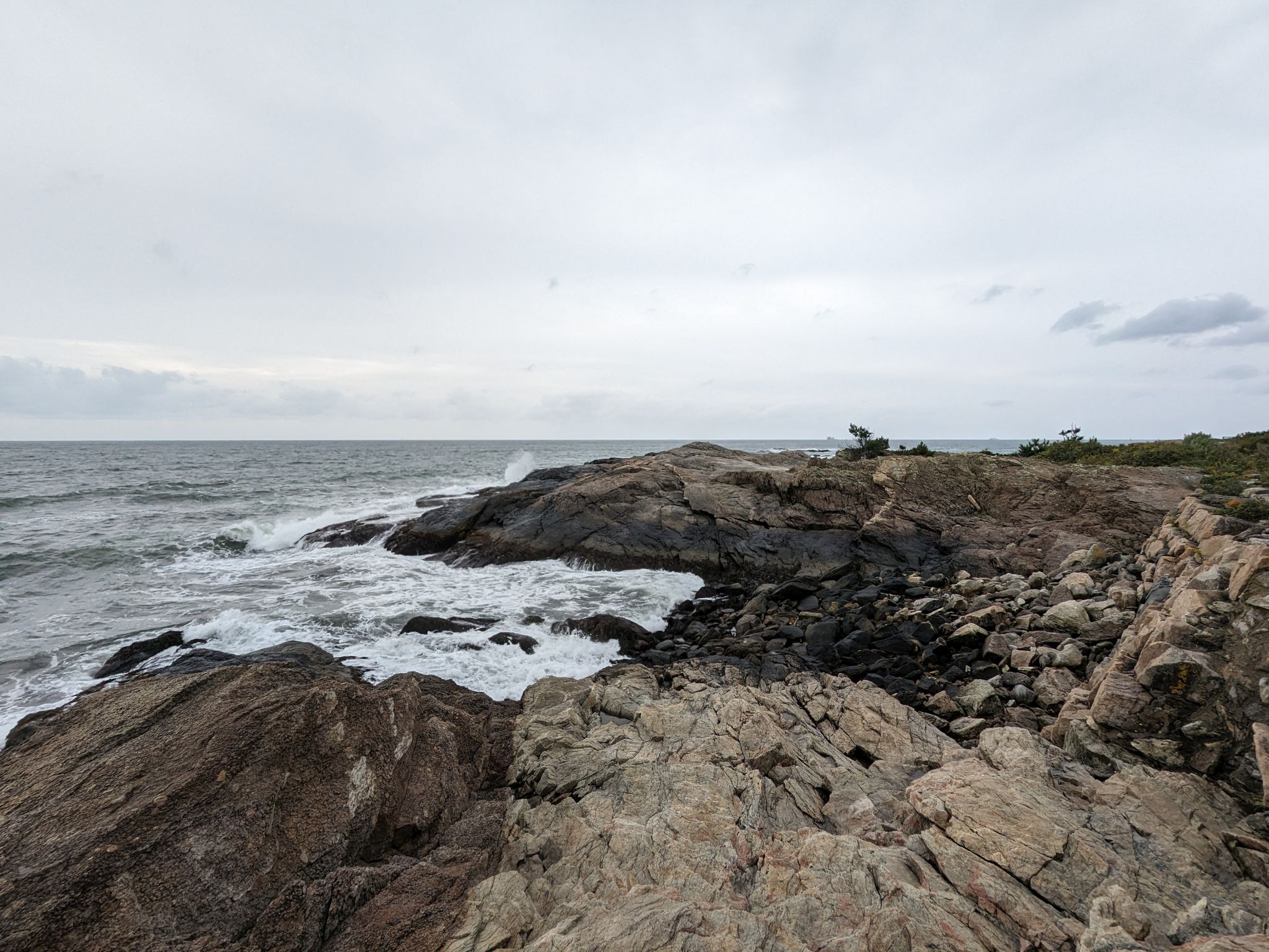 Danach gehen den Cliff Walk, welcher sich 5 km lang entlang der Klippen schlängelt und auf der einen Seite einen herrlichen Ausblick auf den Atlantik bietet. Auf der Landseite geht es vorbei an vielen riesigen Villen. Wir starten beim „The Breakers“ (eine ehemalige Sommerresidenz der Vanderbilts), gehen vorbei am Marble House mit seinem schönen Chinesischen Teehaus, Rough Point, einigen Universitätsgebäuden, etc. und gehen bis zum „The Waves“. Der Weg ist teilweise sehr gut befestigt, an einigen Stellen muss man über die großen Steine der Klippen klettern und es gibt sogar 2 Tunnel.