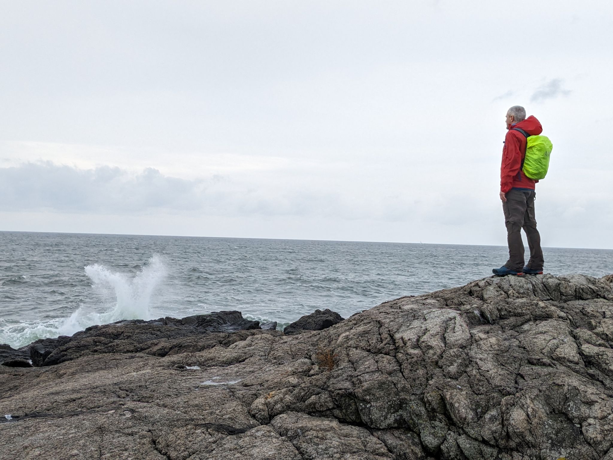 Zuerst fahren wir den berühmten „Ten Mile Drive“ entlang der Küste und genießen erste Ausblicke auf den Atlantischen Ozean und die raue Küstenlinie. Zuerst machen wir kurz an einem Strand halt, der aufgrund des Wetters nicht so einladend ist. Nach kurzer Weiterfahrt sehen wir an einem kleinen Pond einen Seeadler – wunderschön, aber zu schnell für unsere Kamera.