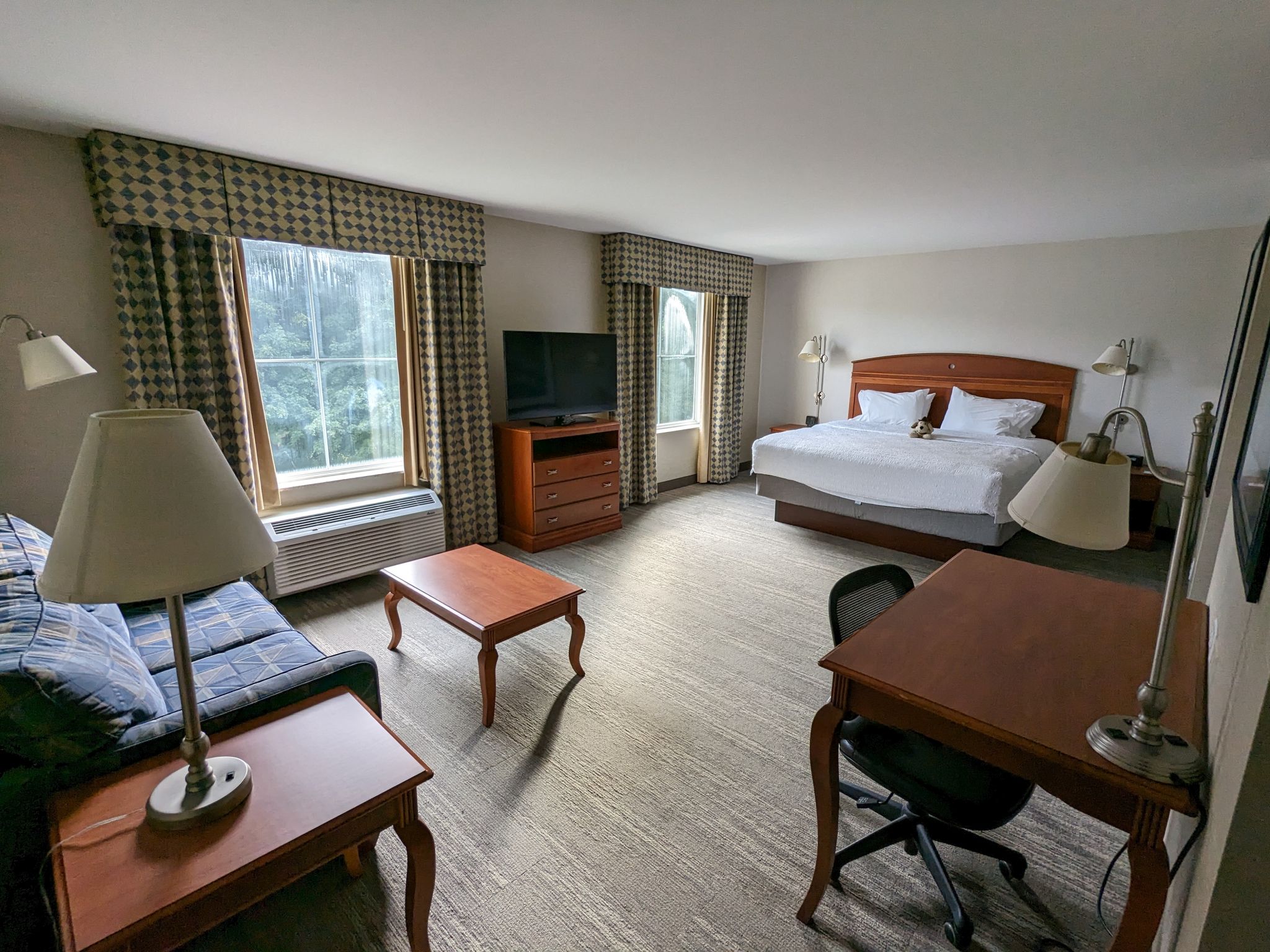 Wir verlassen Rhode Island und sind nun im nächsten Bundesstaat: Connecticut. Wir checken in unserem Hotel, dem Hampton Inn & Suites Mystic ein und auch hier haben wir ein richtig großes Zimmer.