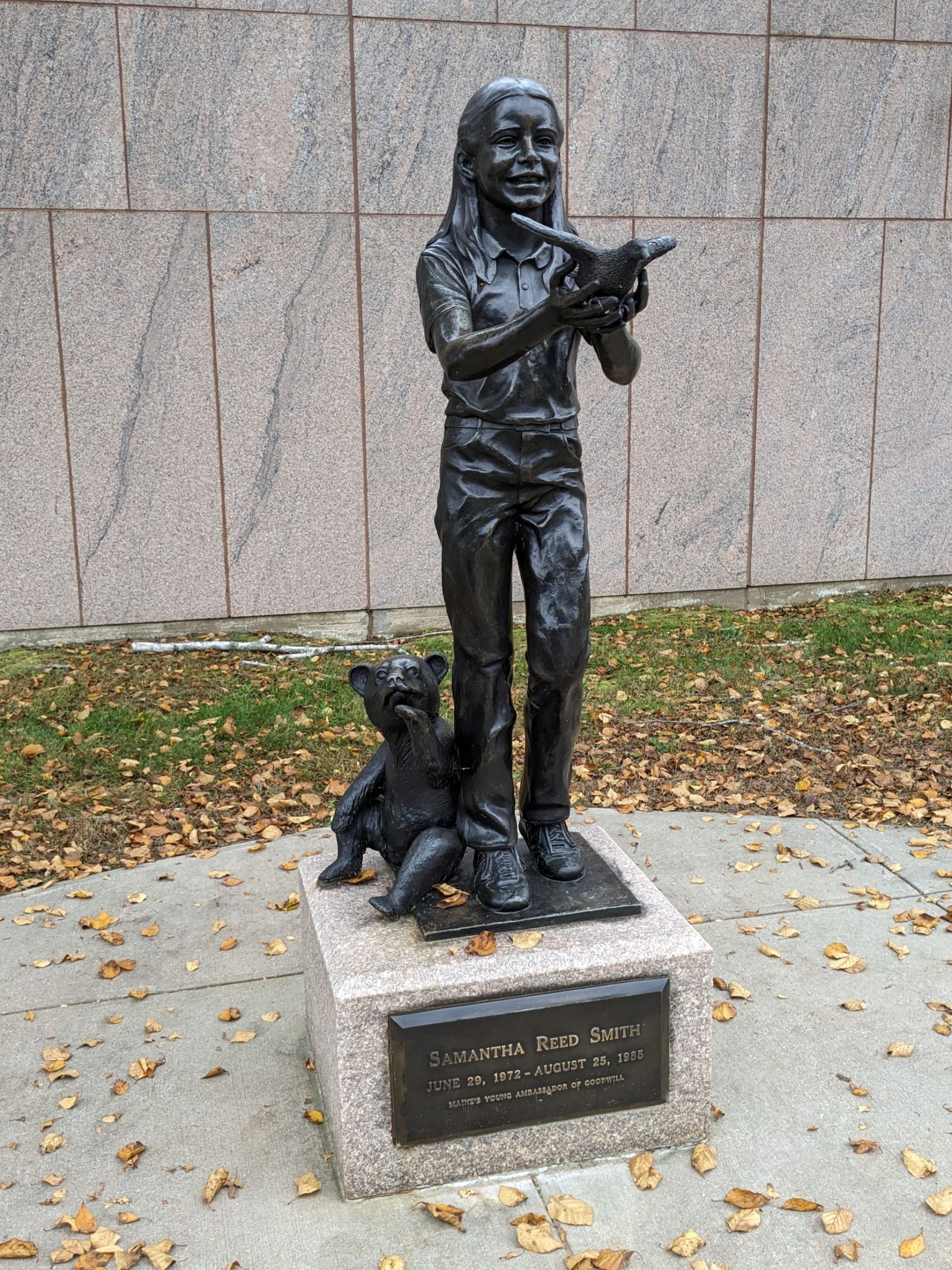 Die Statue der kleinen Samantha Smith suchen wir gezielt. Sie schrieb 1982 als sie 10 Jahre alt war einen Brief an das Staatsoberhaupt der Sowjetunion, in dem sie ihn fragte, warum er Krieg gegen die USA führen will? Er antwortete und lud sie und ihre Eltern ein ihn zu besuchen. Diese Reise gilt als ein Meilenstein in der persönlichen Kommunikation zwischen Russland und Amerika während des Kalten Krieges.